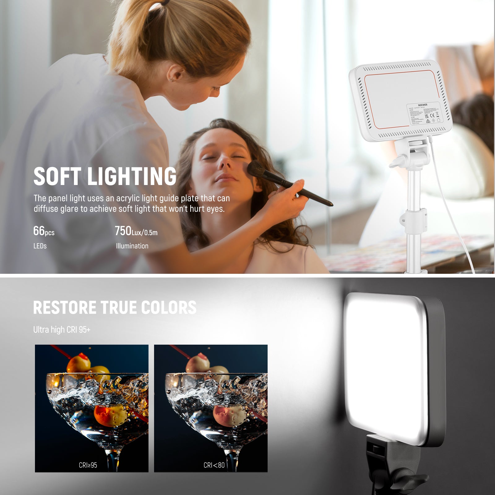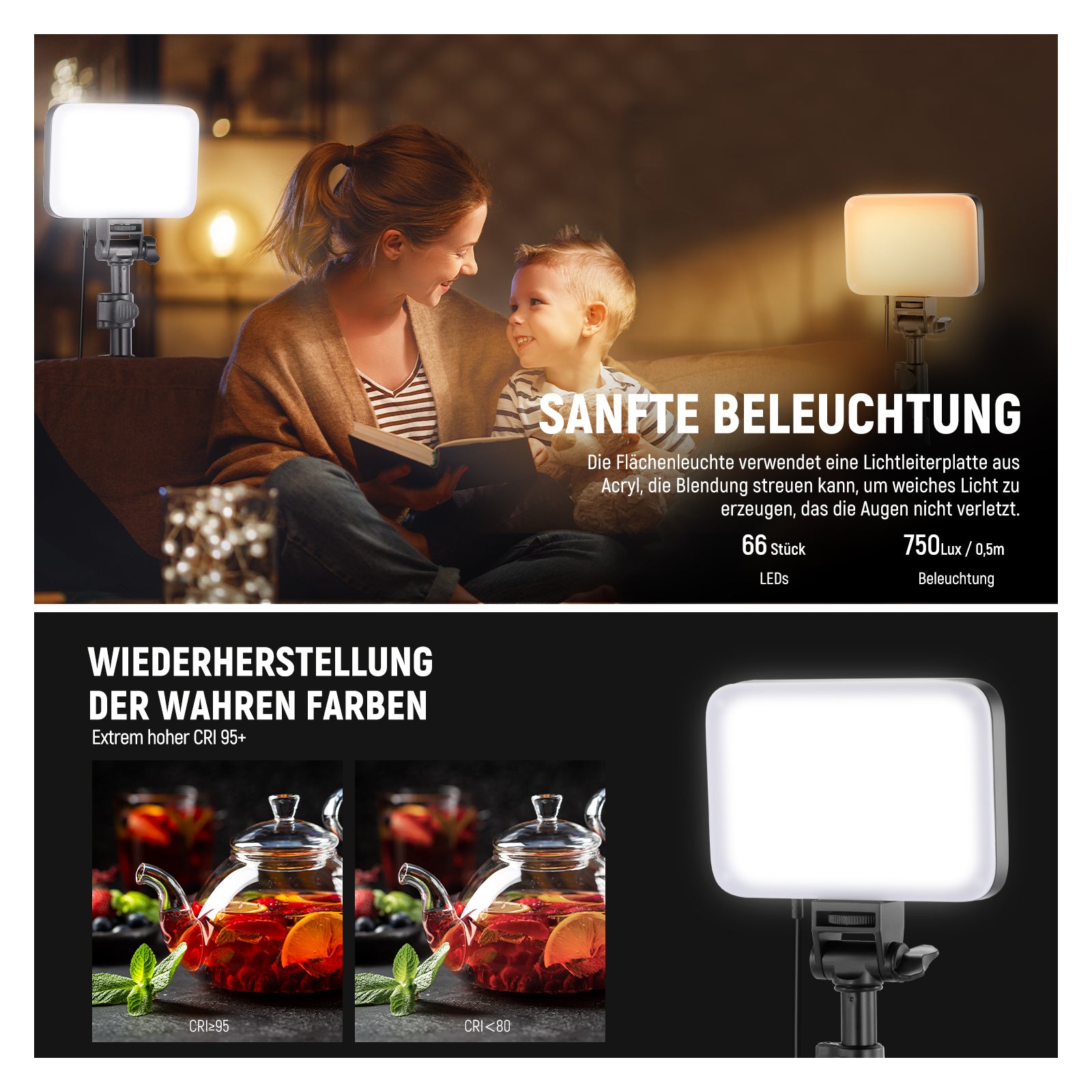 Hinweis: Unterstützt ausschließlich die Stromversorgung über einen herkömmlichen 5V/2A-Adapter und ist nicht mit Schnellladeadaptern kompatibel. Wenn das Licht für 1 Sekunde aufleuchtet und sich dann ausschaltet, weist dies darauf hin, dass ein Schnellladeadapter verwendet wird. Bitte ersetzen Sie diesen durch einen herkömmlichen Adapter. - Bi Farb LED Panel Videoleuchte Beleuchtungsset- Die 10W Studio Panel Tischlicht mit 66 LEDs liefert bis zu 750lx/0,5m (mit Farbfilter), mit 3200K und 5600K Bi Farbtemperatur, CRI>95. Enthält 2 tragbare Fotografie Stativ Licht steht und 4 Filter, ideal für Make up Wimpern (Wimpern) Künstler, Kosmetiker, Tattoo, Friseur, Selfie Fotos, TikTok/YouTube Social Media Video Aufnahme, Podcast, FaceTime, Zoom Anruf, Videokonferenz, Live Streaming, Vlogging, Filmen, Kamera Fotoshoot