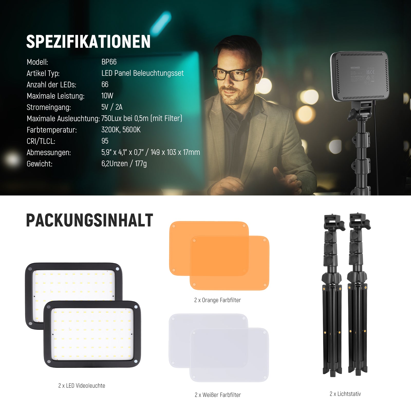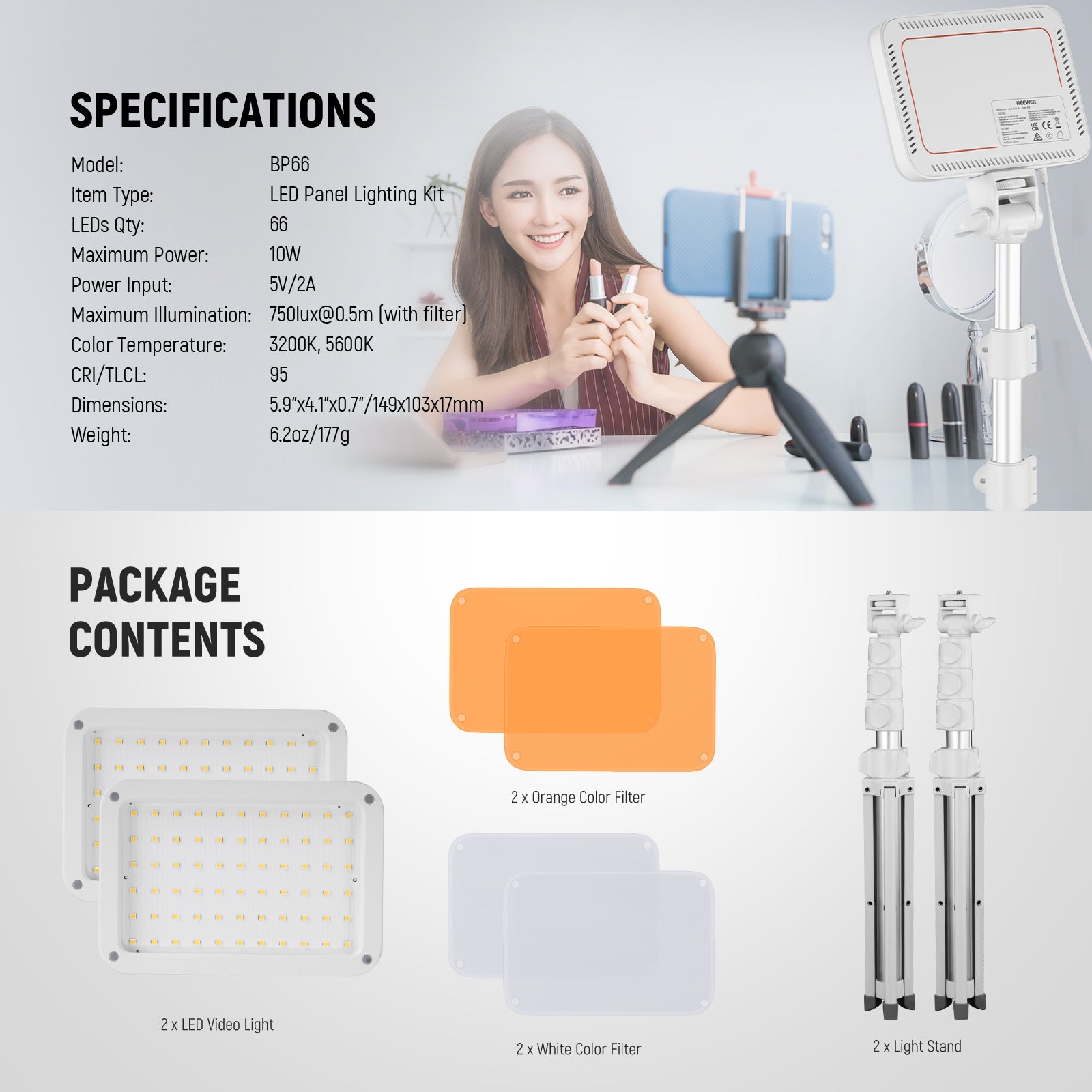 NEEWER BASICS 2er Pack BP66 Bi-Color LED Videolicht Panel Beleuchtungsset
