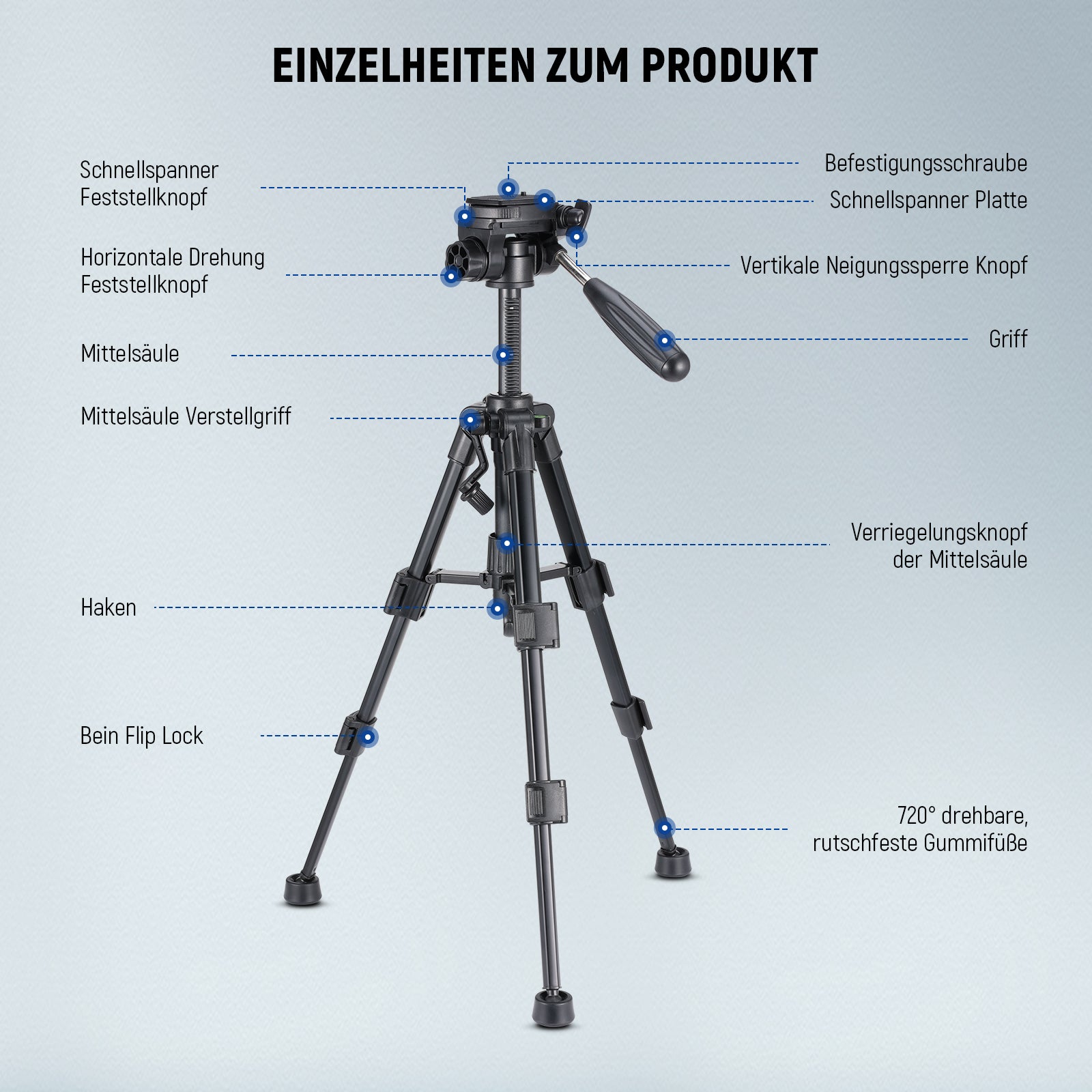 - Hauptmerkmale: 3-Wege-Schwenk-Neigekopf & Griff