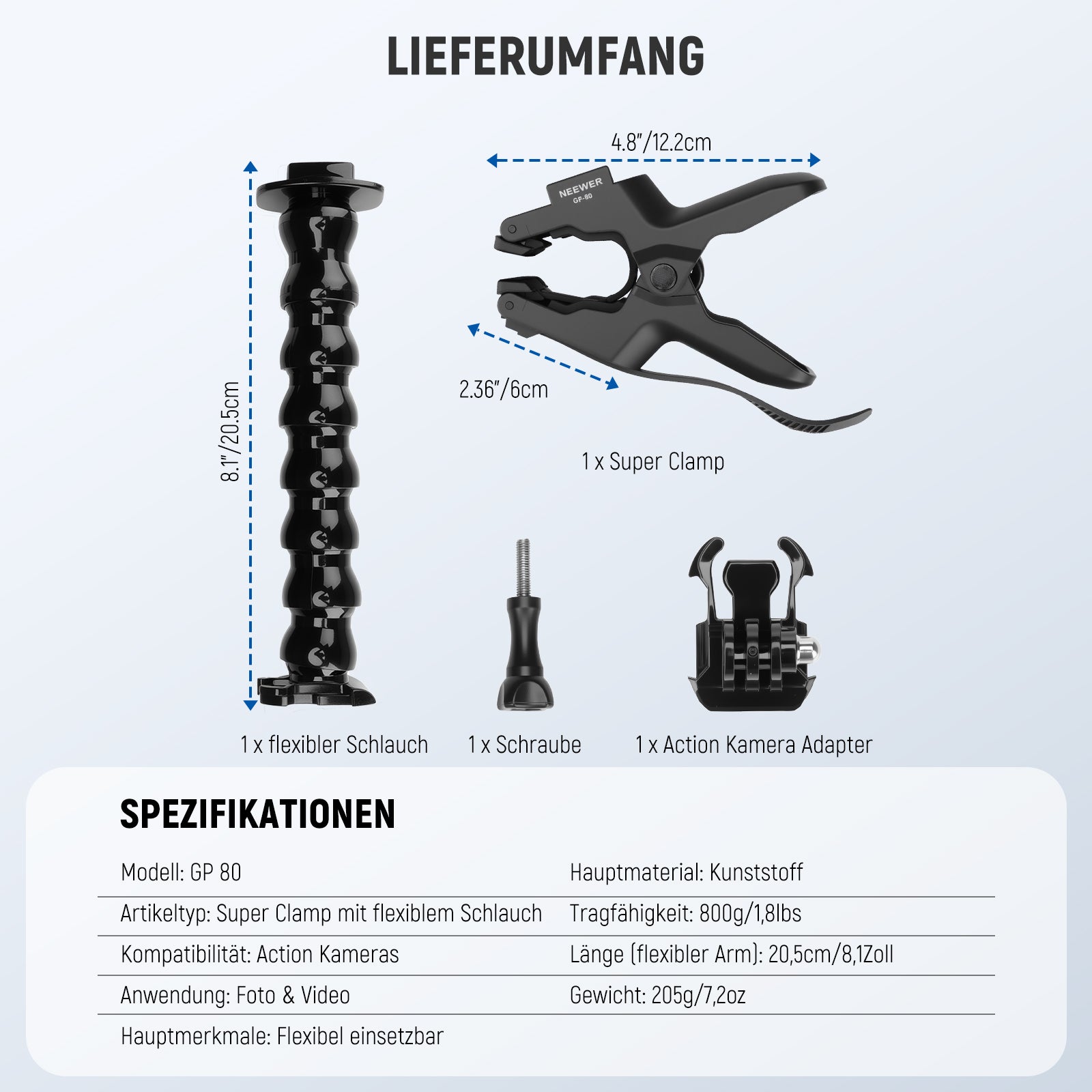 NEEWER GP-80 Flexible Klemmhalterung für Actionkamera