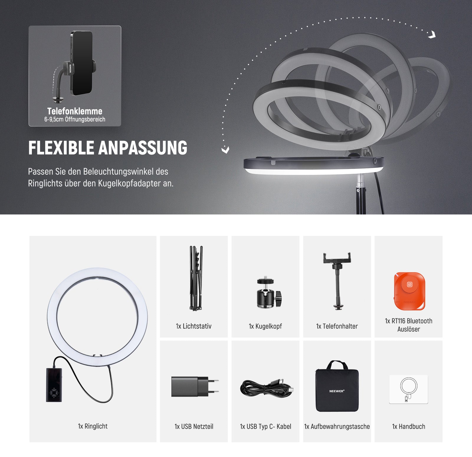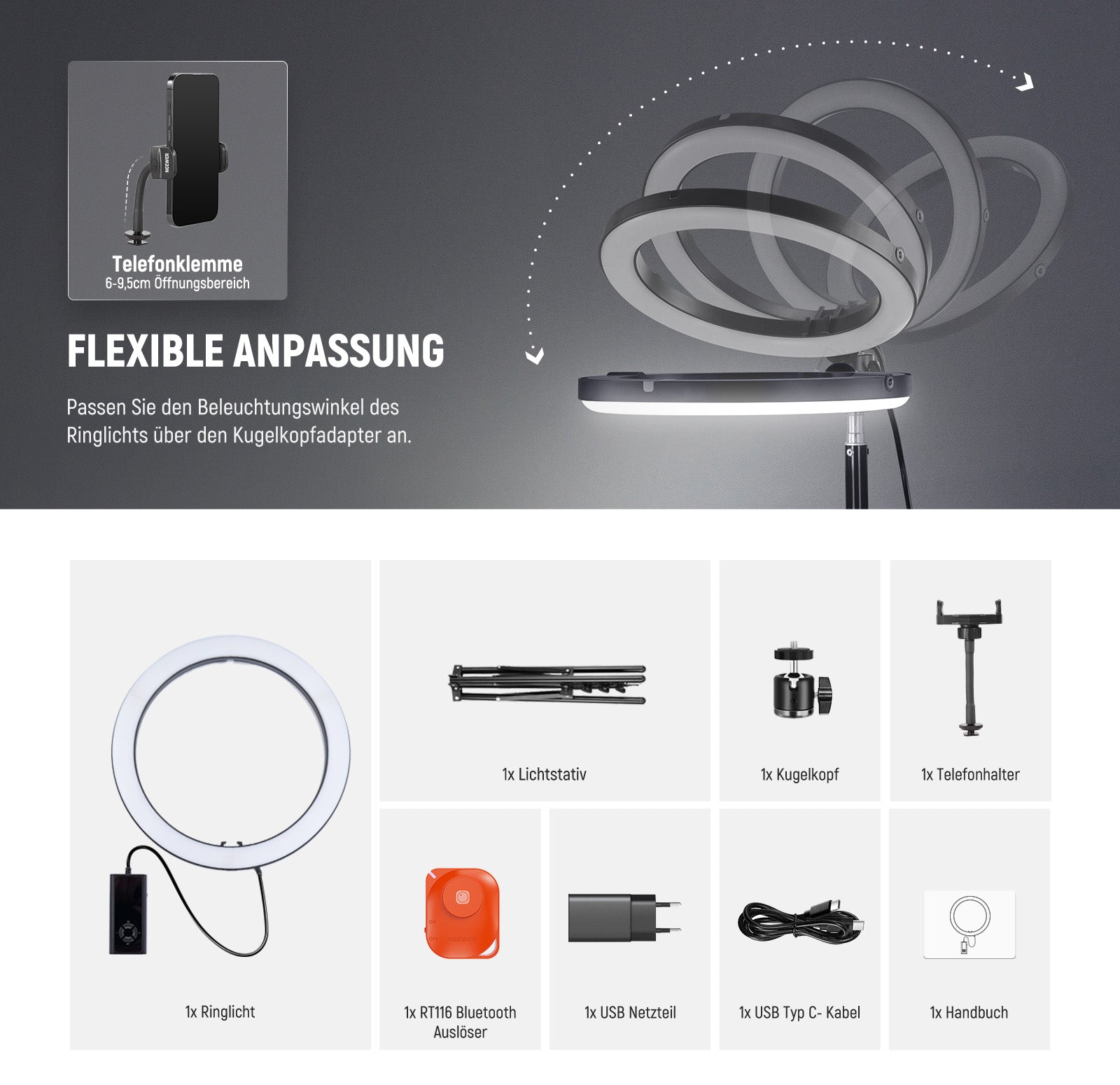 - Artikeltyp: RGB LED Ringlicht-Kit