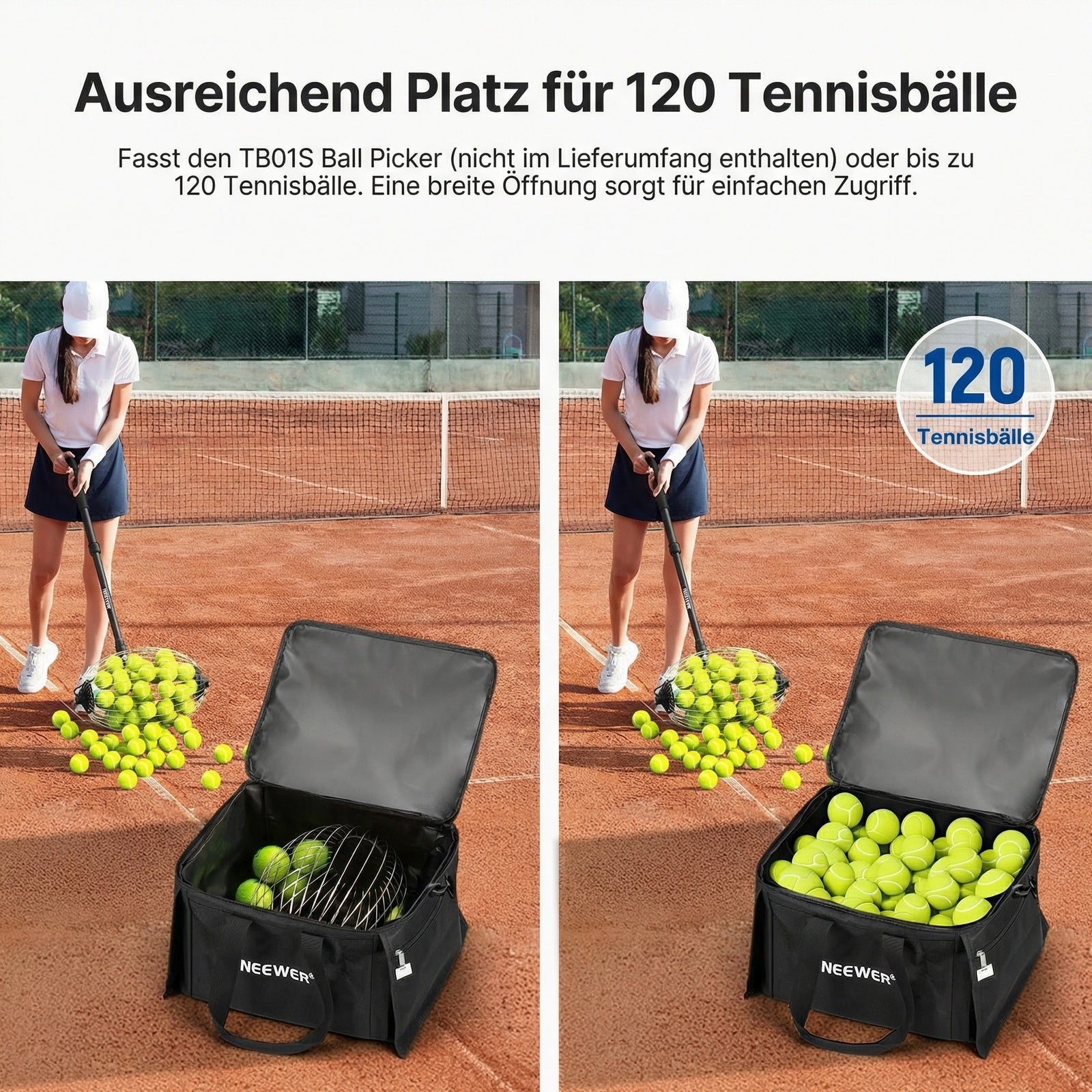 - Kompatibilität: Bis zu 120 Tennisbälle