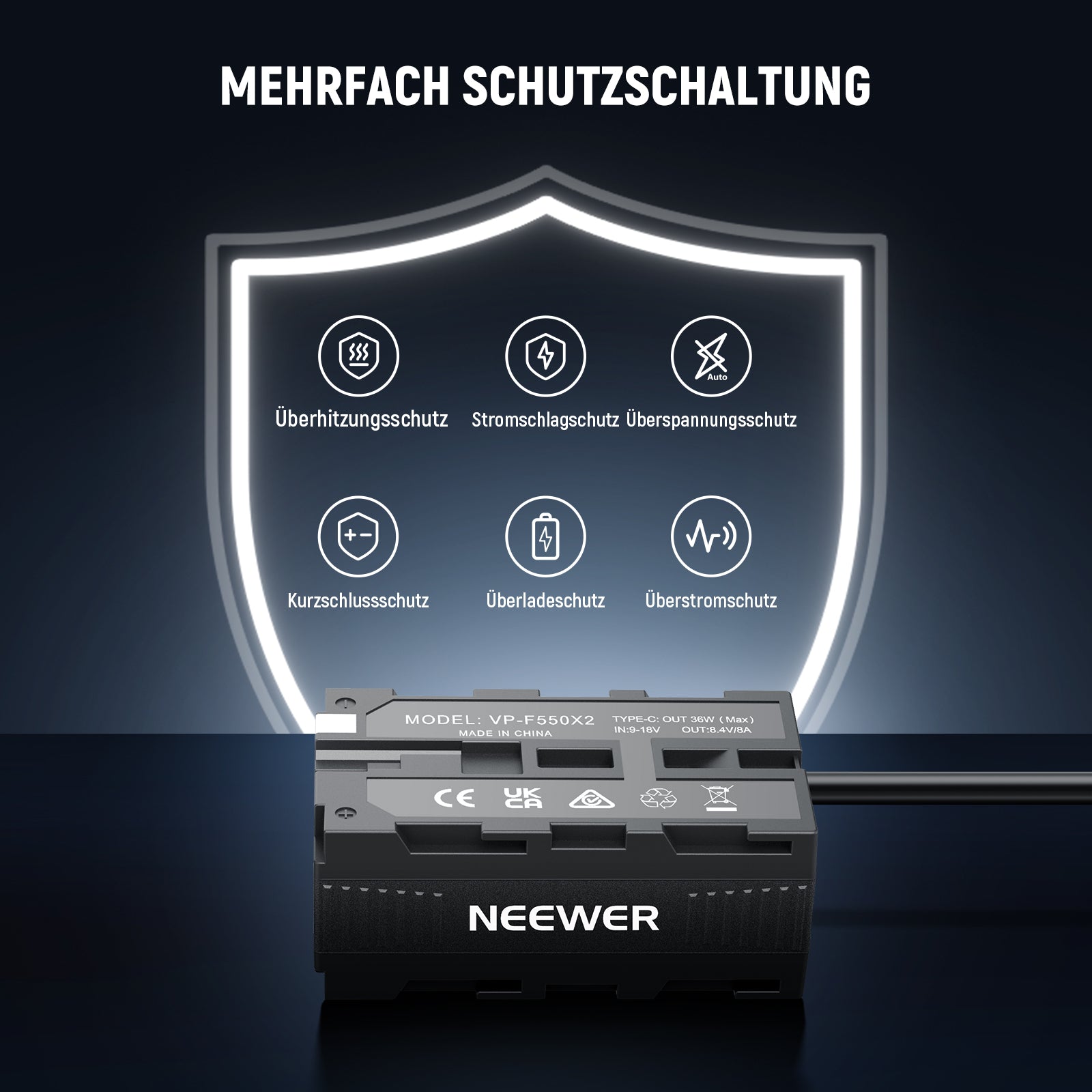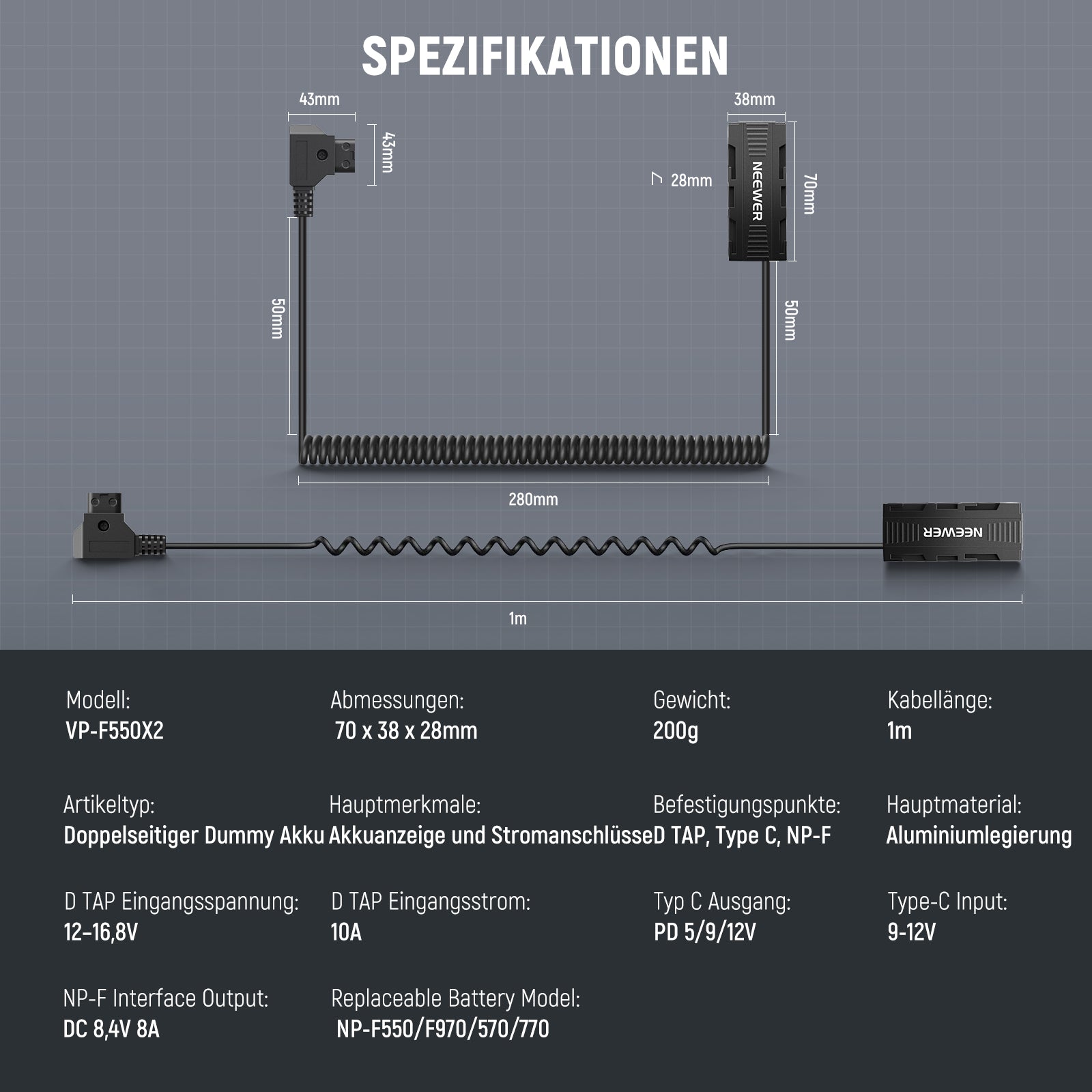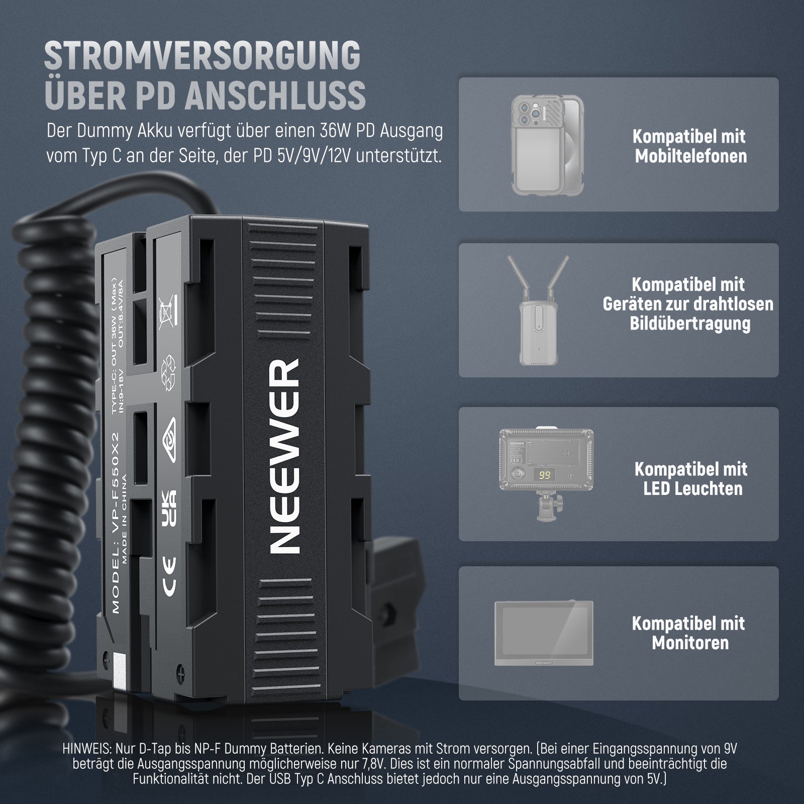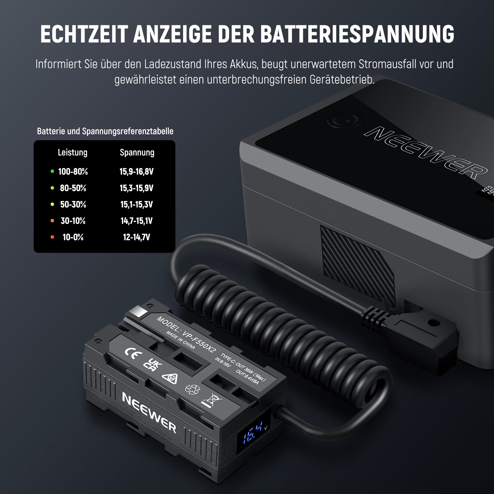 NEEWER VP-F550X2 Doppelseitiger Dummy Akku Adapter mit Display