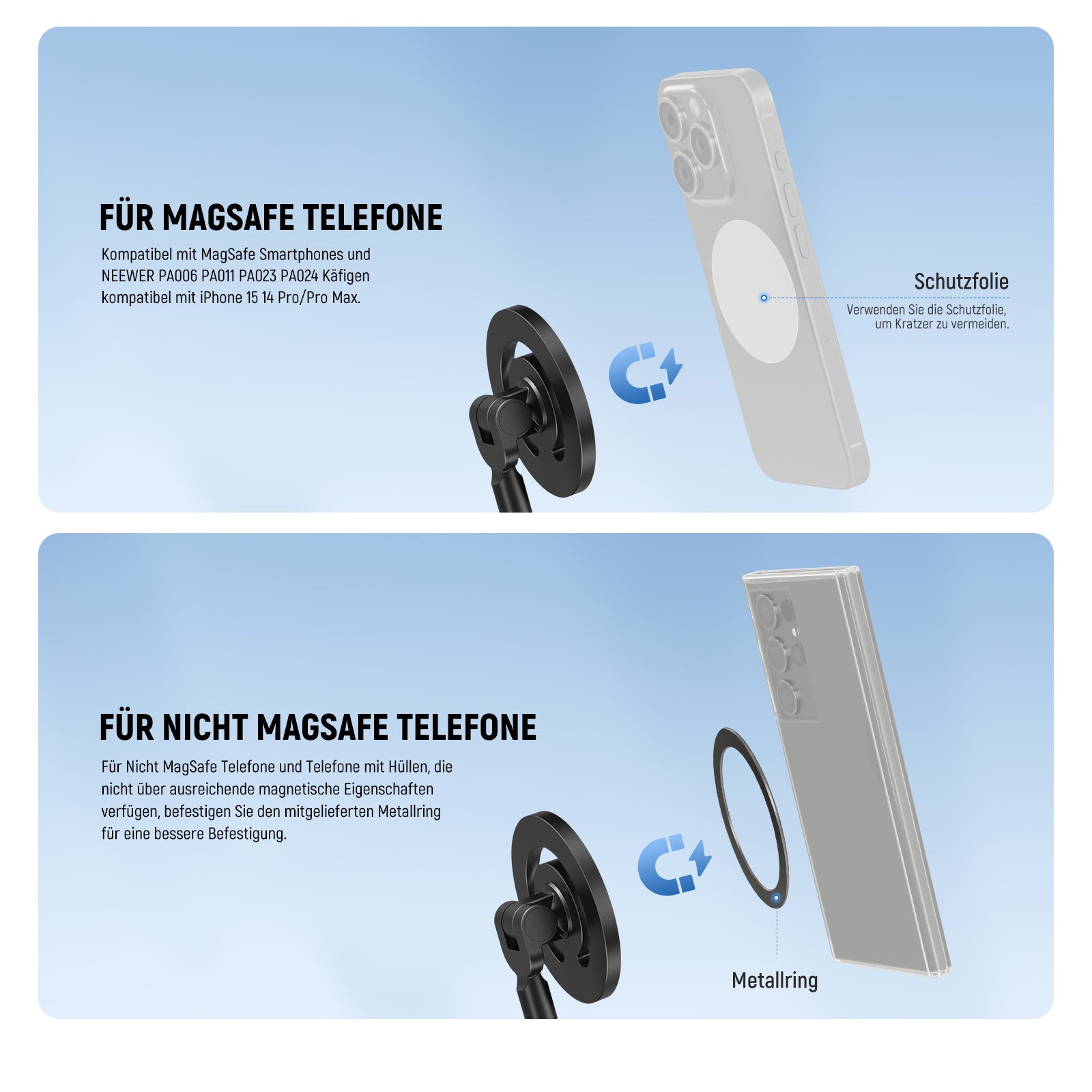 - Kompatibilität: kompatibel mit MagSafe iPhone Serie und Android Smartphone