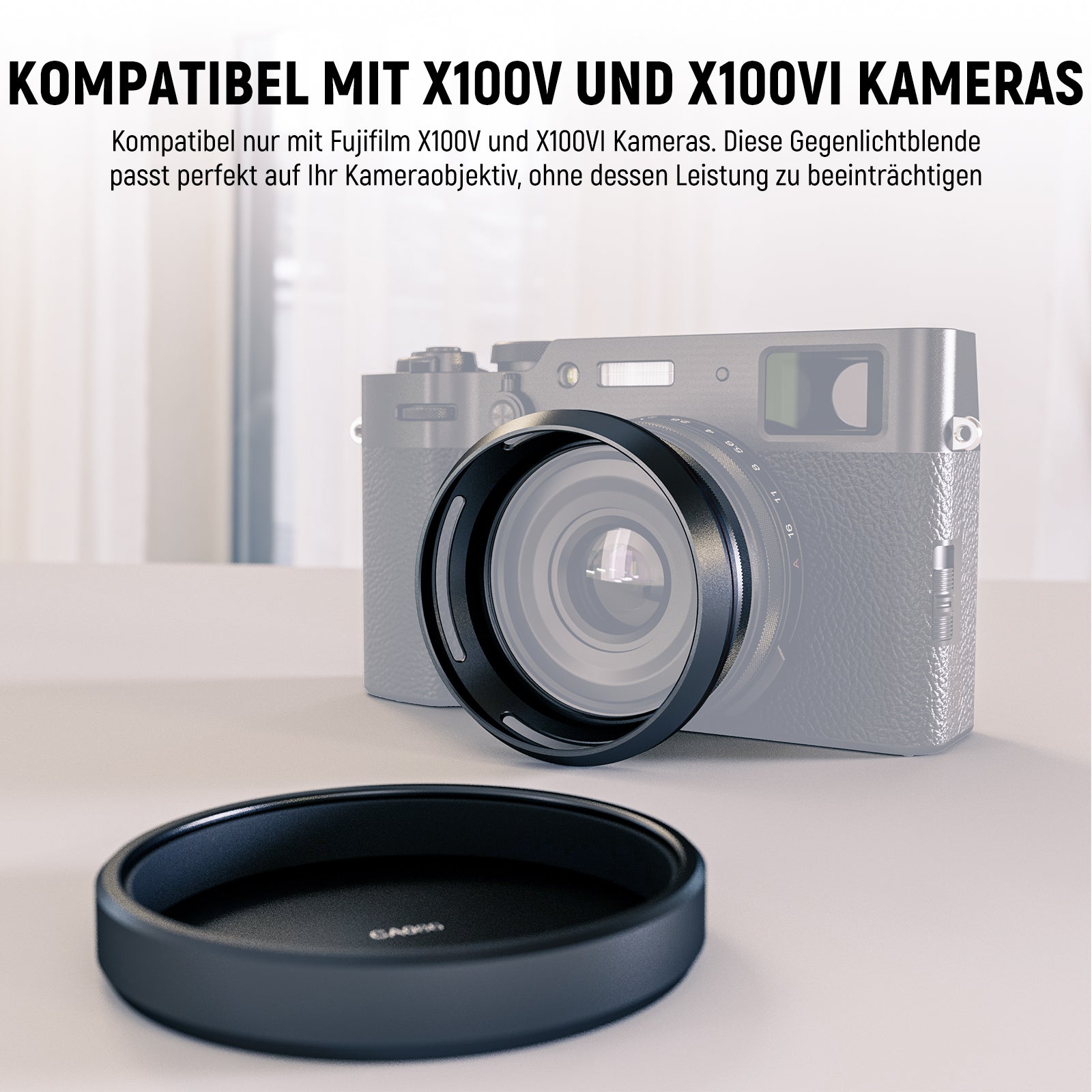 - Für X100V und X100VI Kameras- Kompatibel nur mit Fujifilm X100V und X100VI Kameras. Diese Sonnenblende passt perfekt auf Ihr Kameraobjektiv, ohne dessen Leistung zu beeinträchtigen
