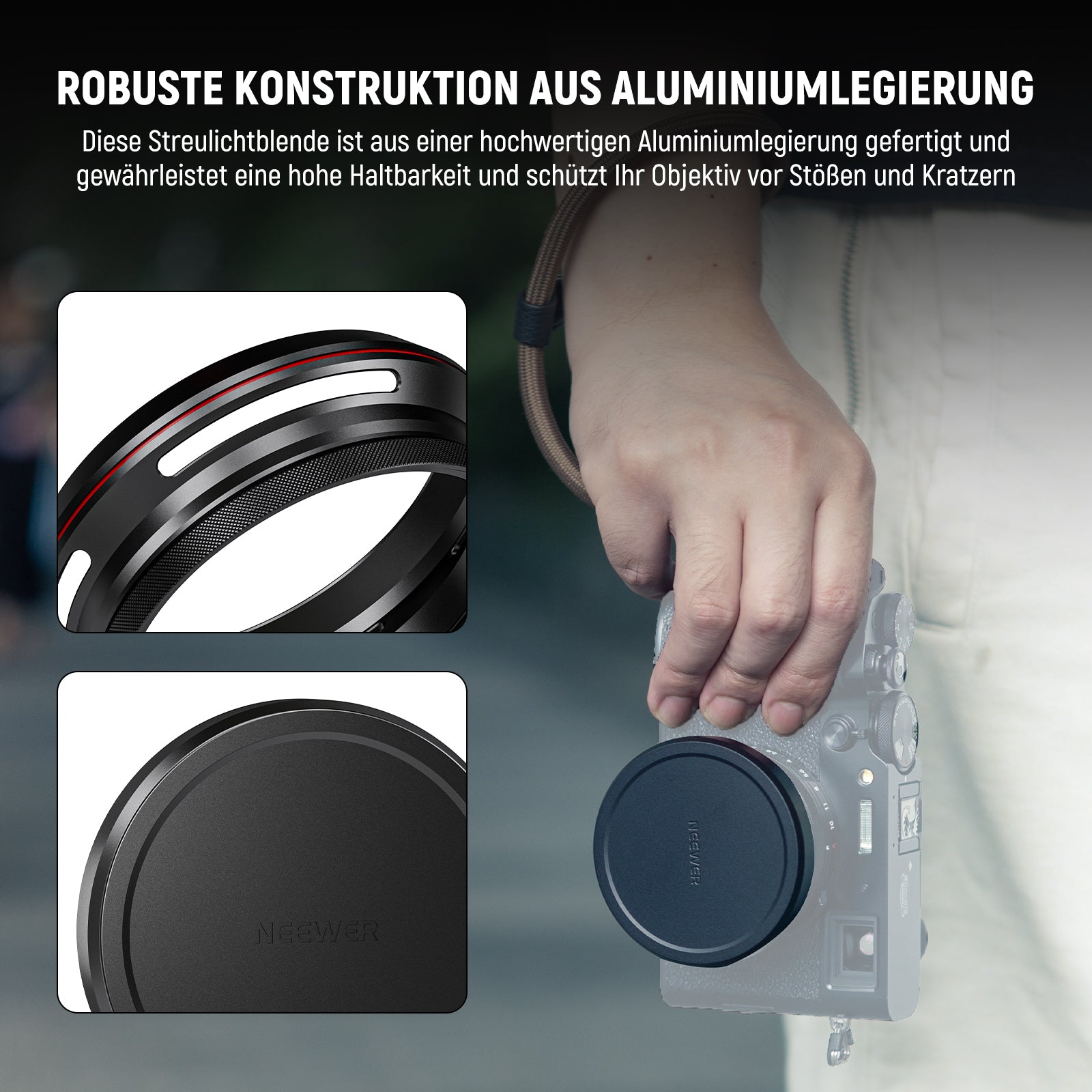 - Robuste Konstruktion aus Aluminiumlegierung- Diese Gegenlichtblende ist aus einer hochwertigen Aluminiumlegierung gefertigt und gewährleistet eine hohe Haltbarkeit und schützt Ihr Objektiv vor Stößen und Kratzern