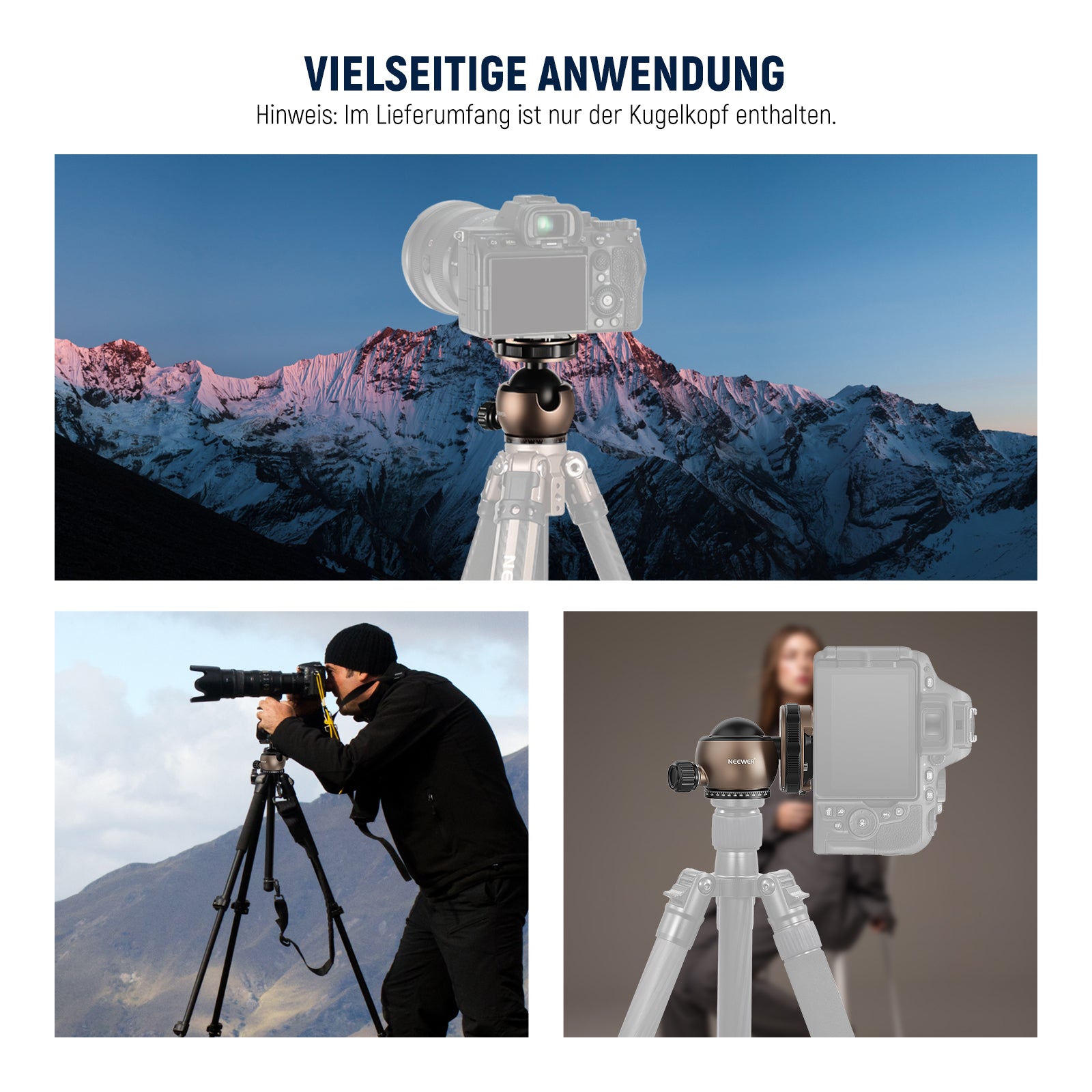 - 【Kugelkopf mit niedrigem Profil】Der φ40mm Kugelkopf mit niedrigem Profil ist vollständig kompatibel mit NEEWER LITETRIP Stativen, senkt seinen Schwerpunkt für mehr Stabilität und trägt eine Last von bis zu 22 Pfund/10kg und ermöglicht mehr Flexibilität für einzigartige Winkel und Perspektiven. Mit einem unteren 3/8" Gewindeloch kann die Kugelkopfhalterung auch an anderen Stativen, Einbeinstativen, Slidern usw. befestigt werden
