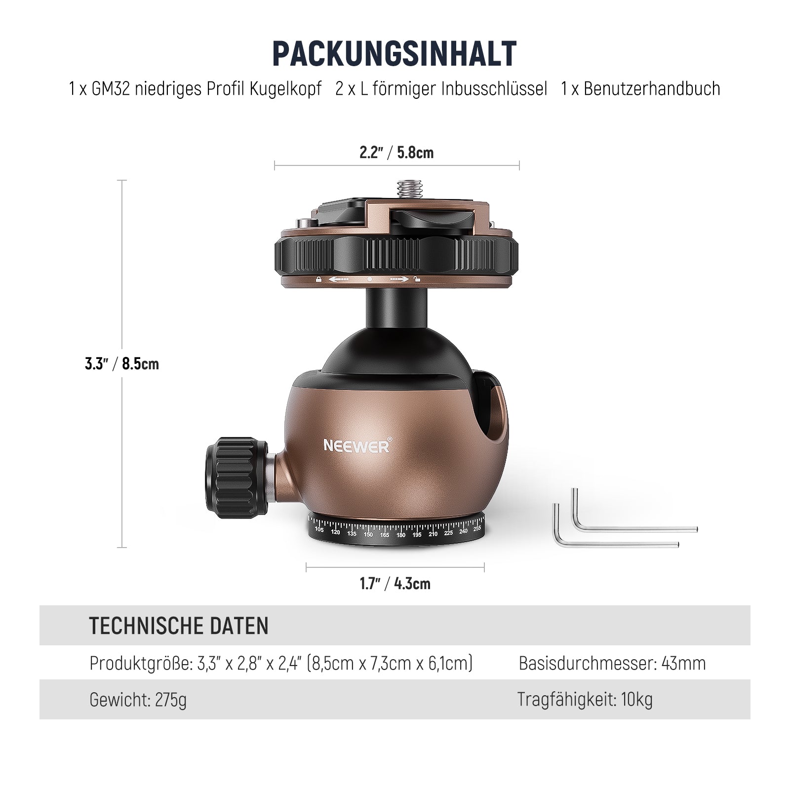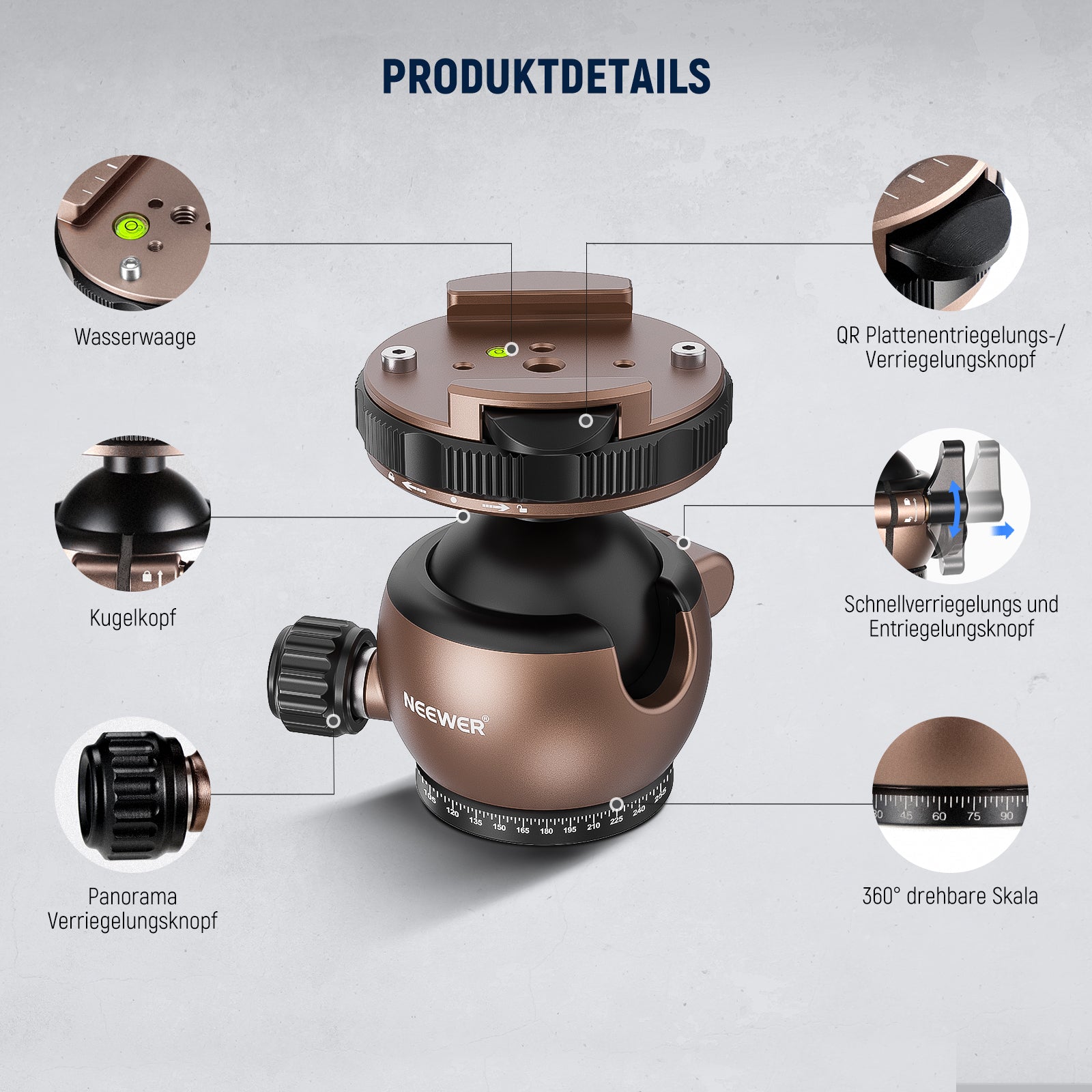NEEWER GM32Verbesserter flacher Kugelkopf