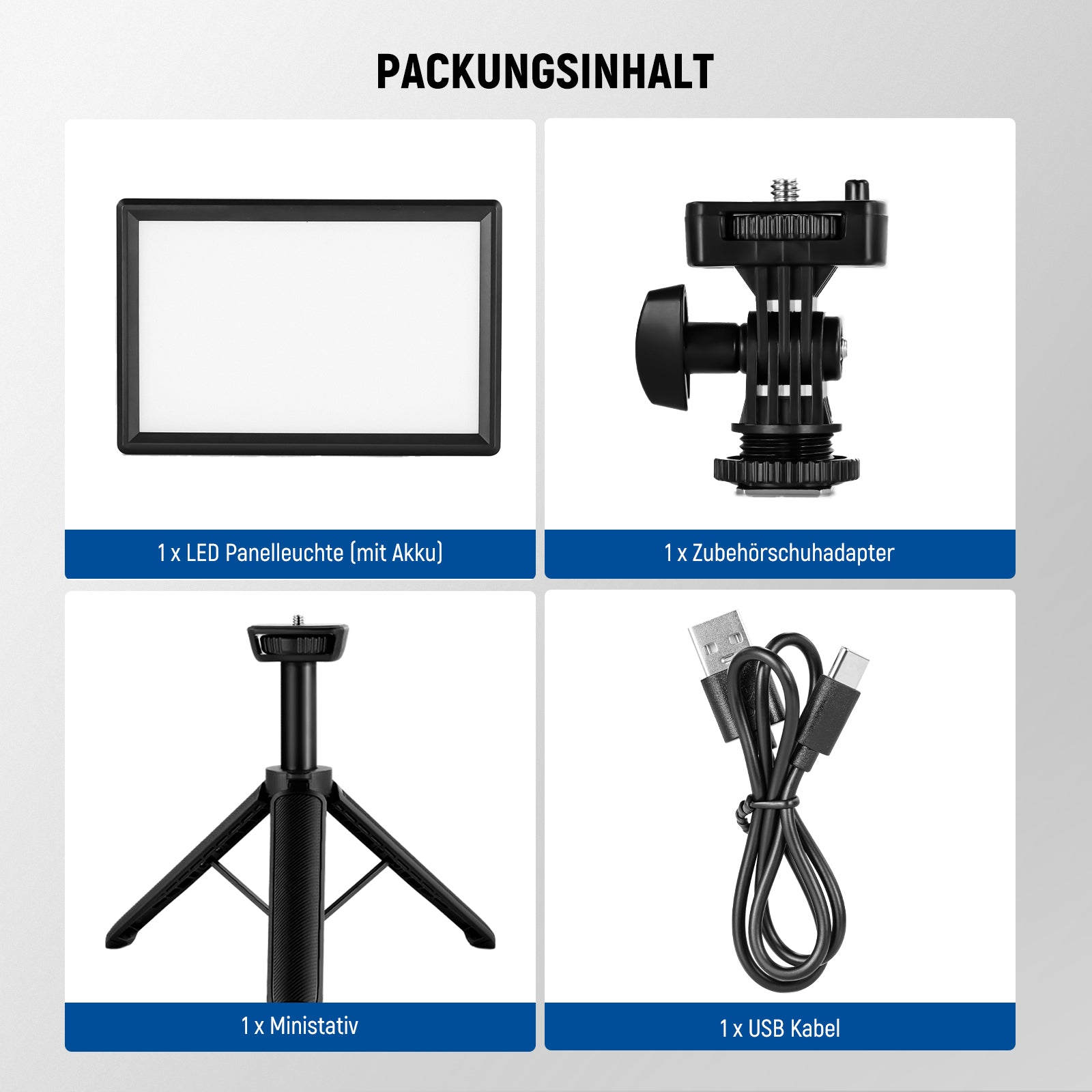 - 1 x LED Videolicht Panel mit eingebautem Akku