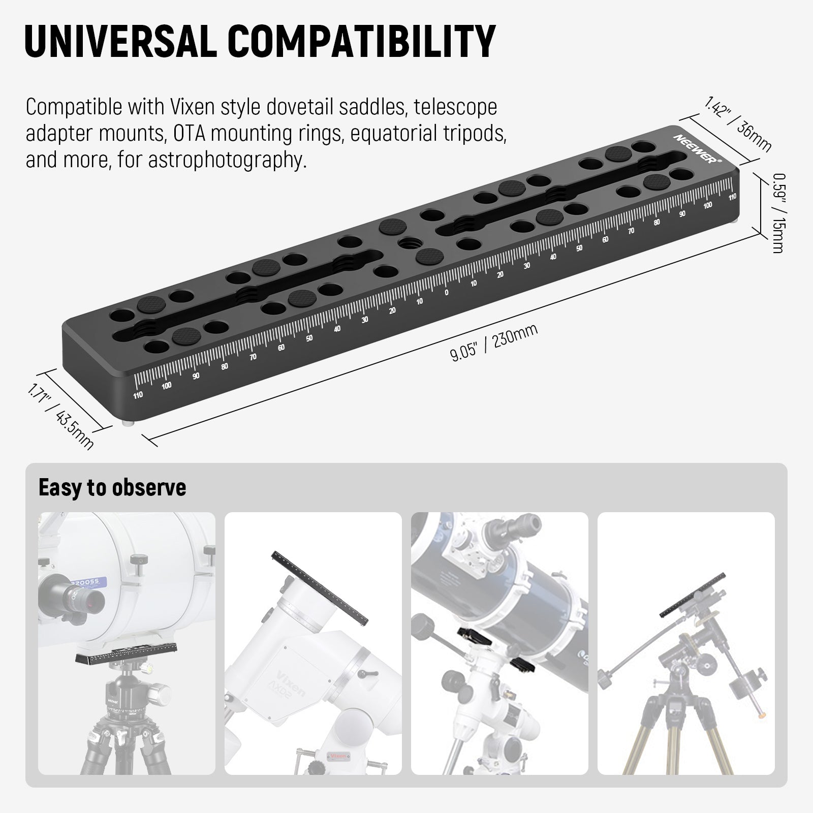- 【Universelle Kompatibilität】 Mit einem Schwalbenschwanz im Vixen-Stil an der Basis ist diese Montageplatte mit jedem Standard-Sattel im Vixen-Stil kompatibel