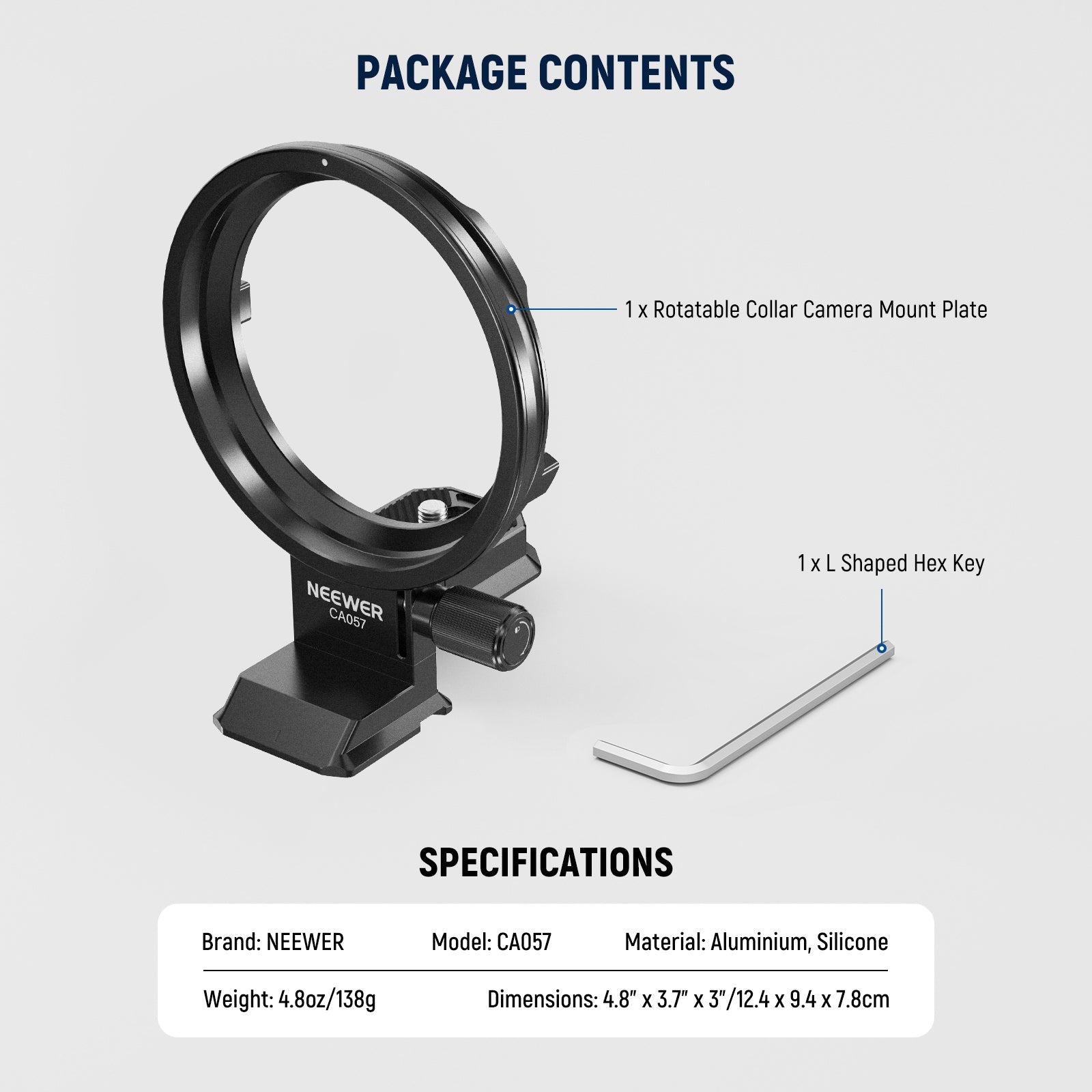 - 【Sichere Verdrehungssichere Verriegelung】 Der Kameraobjektivkragen befestigt Ihre spiegellose Vollformatkamera mit der verdrehsicheren 1/4" Schraube sicher auf der Montageplatte, wobei die kreuzförmigen Gummipolster für zusätzliche Stabilität sorgen. Diese vertikale Kamerahalterung verfügt außerdem über zwei Laschen und Gebogene Kanten am Kragen helfen beim Sichern des Kameraobjektivs. Außerdem sind zwei L förmige Innensechskantschlüssel enthalten, um das Festziehen Ihrer Kamera zu erleichtern