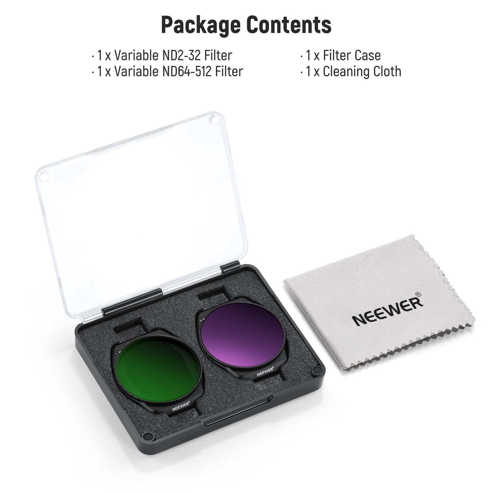 - Präzise Wertberichtigungen- Jeder Filter verfügt über präzise Markierungen, mit denen Sie die gewünschten Neutraldichtewerte mühelos und präzise durch Drehen erreichen können