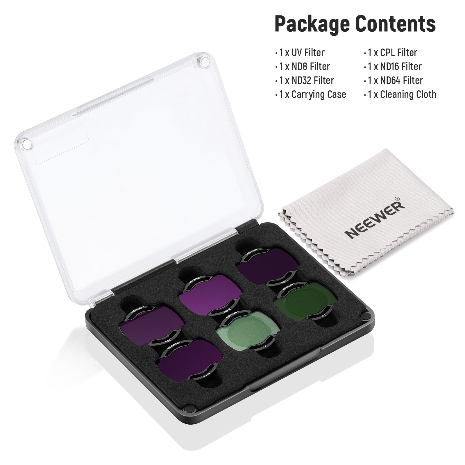 - 【Kompatibel mit DJI Avata Pro mini FPV Drohne】 NEEWER Drohne Filter Set (ND8, ND16, ND32, ND64, UV, CPL) ist speziell für das Kameraobjektiv der Avata Pro mini FPV Drohne konzipiert. Inklusive eines kleinen Hartplastikkoffers, damit Sie das Kit überallhin mitnehmen können