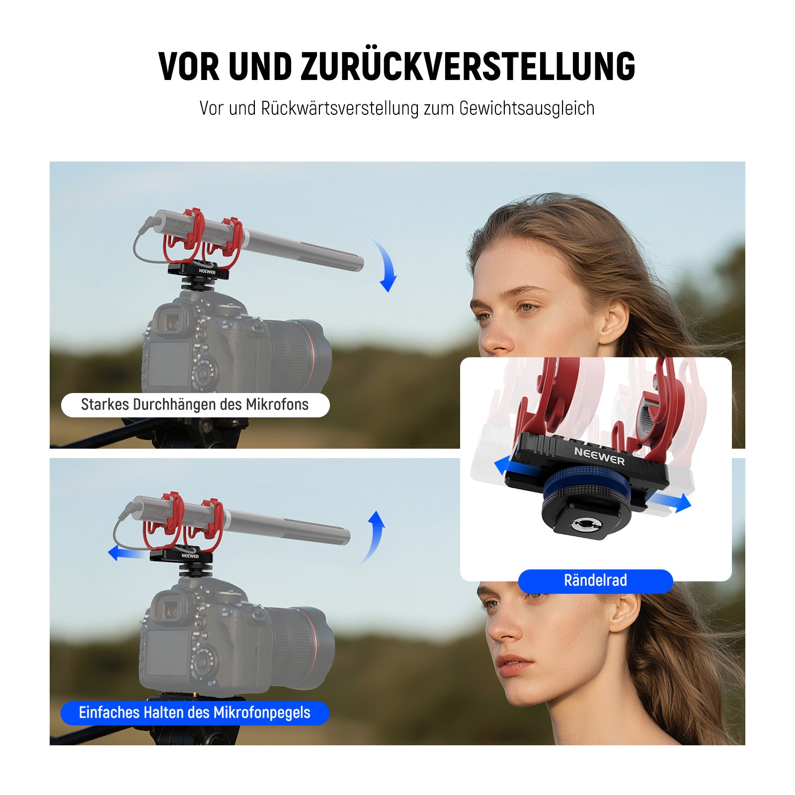 - Universeller Cold Shoe und 1/4Zoll Gewinde- Die Cold Shoe Halterung und das 1/4 Zoll Gewinde ermöglichen den Anschluss an Kameras, Rigs, Galgenstangen und Stative. Darüber hinaus unterstützt Sie die vordere und hintere Positionierung, um das Gewicht im Gleichgewicht zu halten