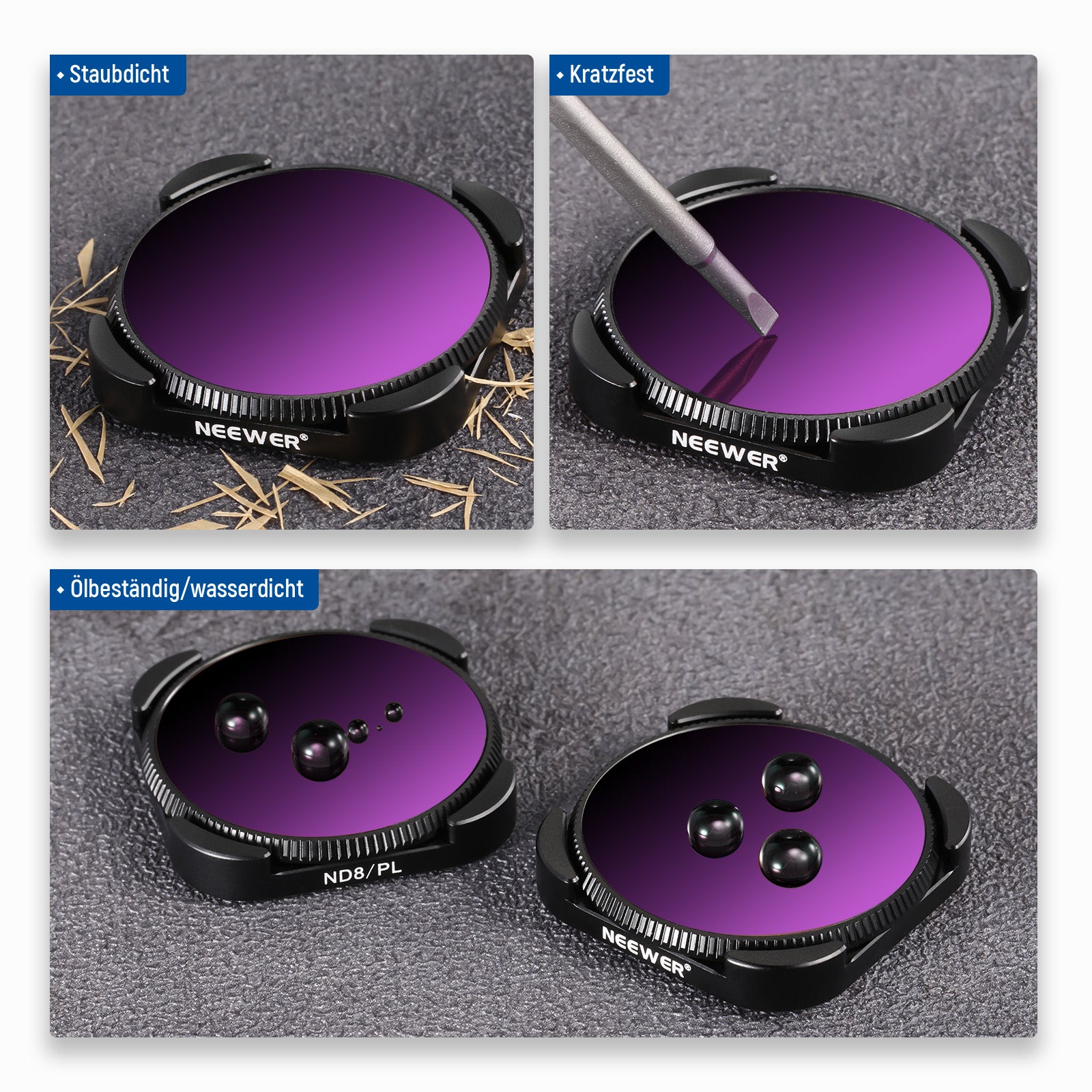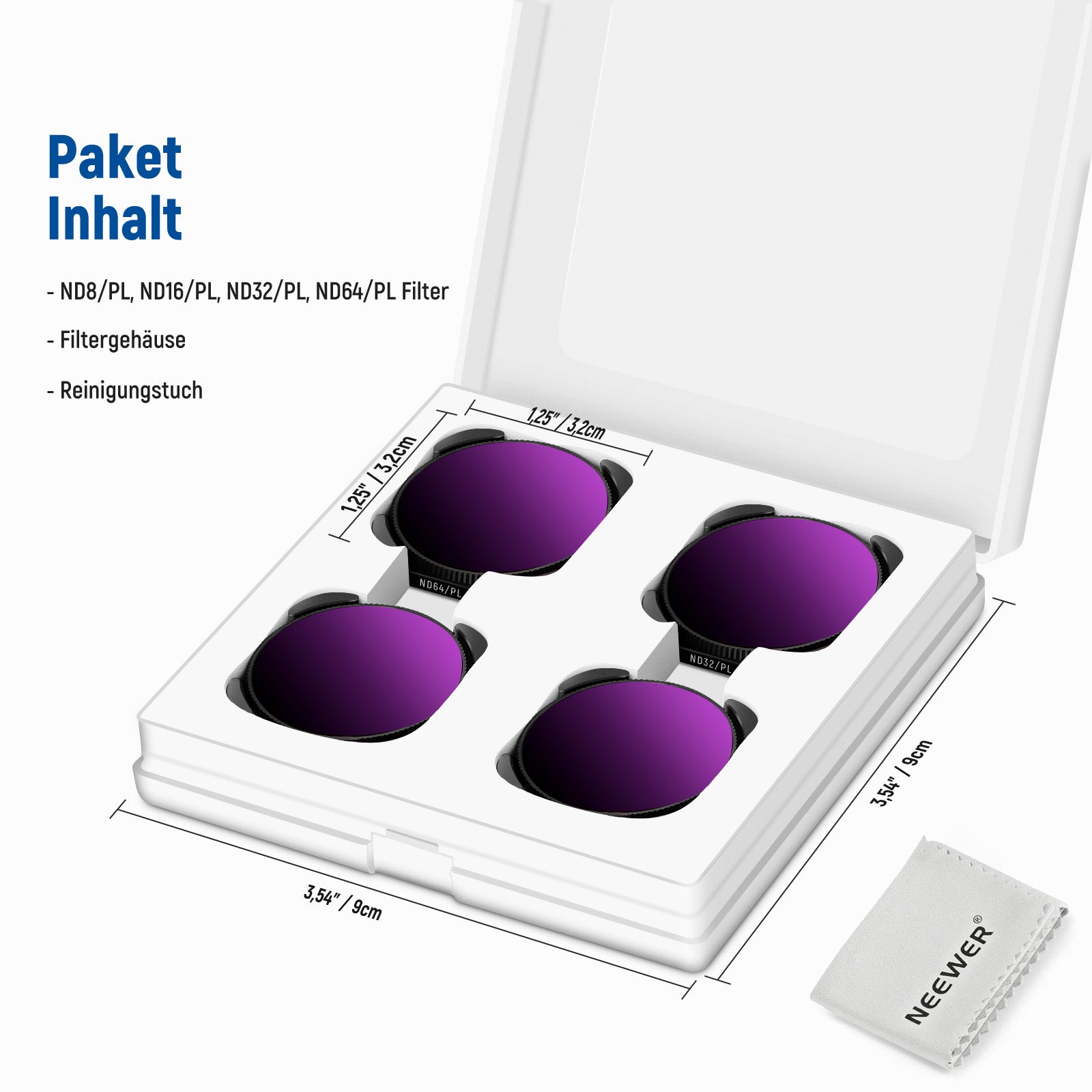NEEWER 4er Pack ND/CPL Filter-Set kompatibel mit GoPro Hero 12/11/10/9