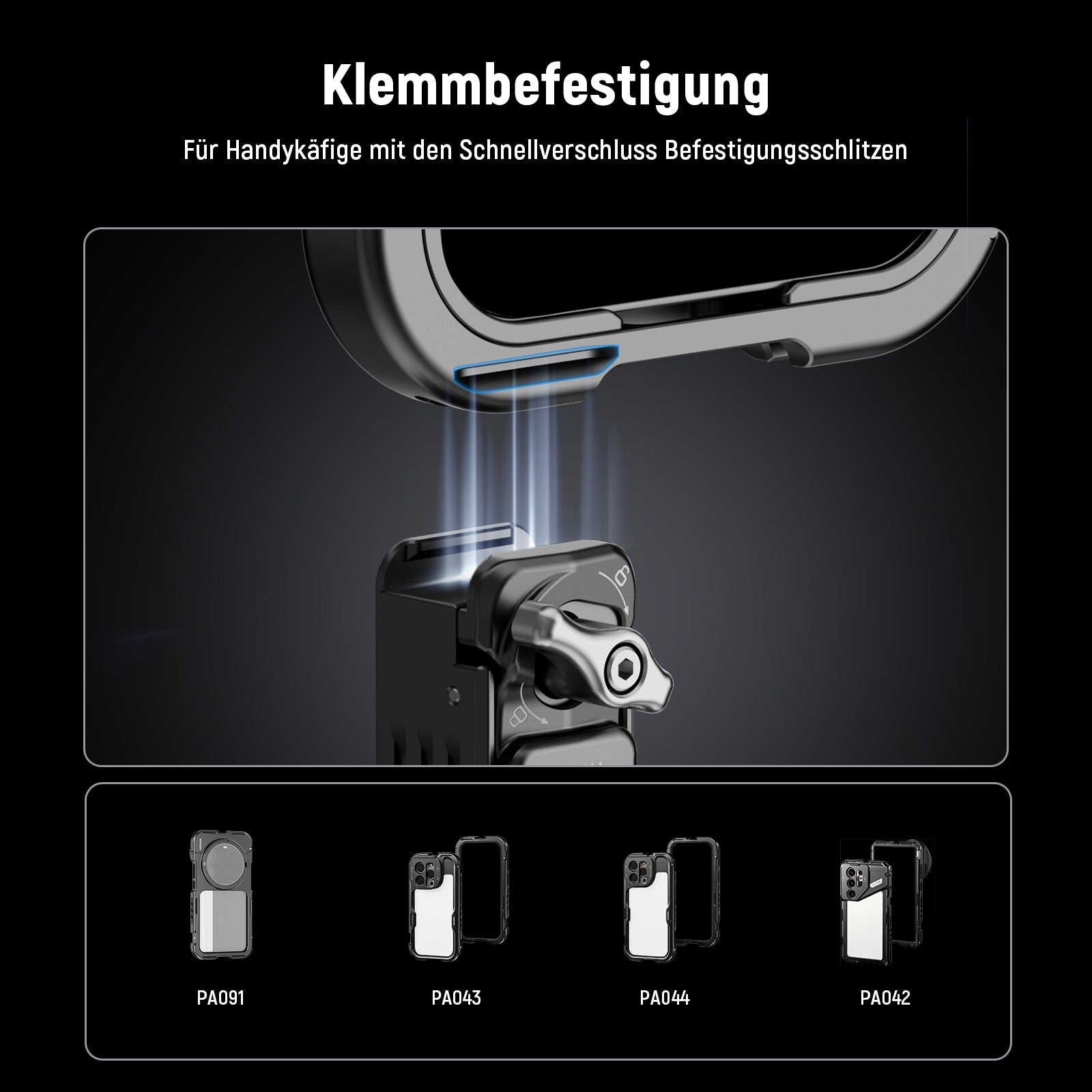 - Klemmbare Handykäfig-Befestigung- Mit einer Schnellspannklemme kann dieser Handy-Stativ-Adapter als Handy-Kamera-Fotografie-Zubehör und Ausrüstung sofort mit einem NEEWER Telefonkäfig mit passenden Befestigungsschlitzen verbunden werden, wie PA043/PA044 für iPhone 15 Pro/15 Pro Max, PA073/PA074 für iPhone 16 Pro/16 Pro Max, PA042/PA082. Für Galaxy S2 4 Ultra/S25 Ultra und PA091 für Xiaomi 15 Ultra