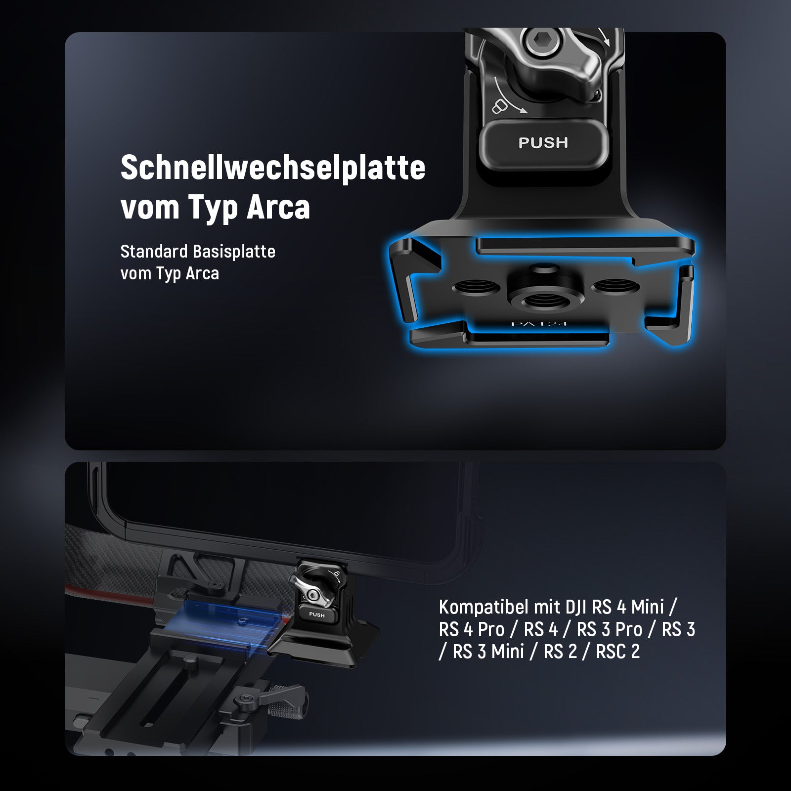 - Hauptmerkmale: Arca-Typ Schnellwechselplatte