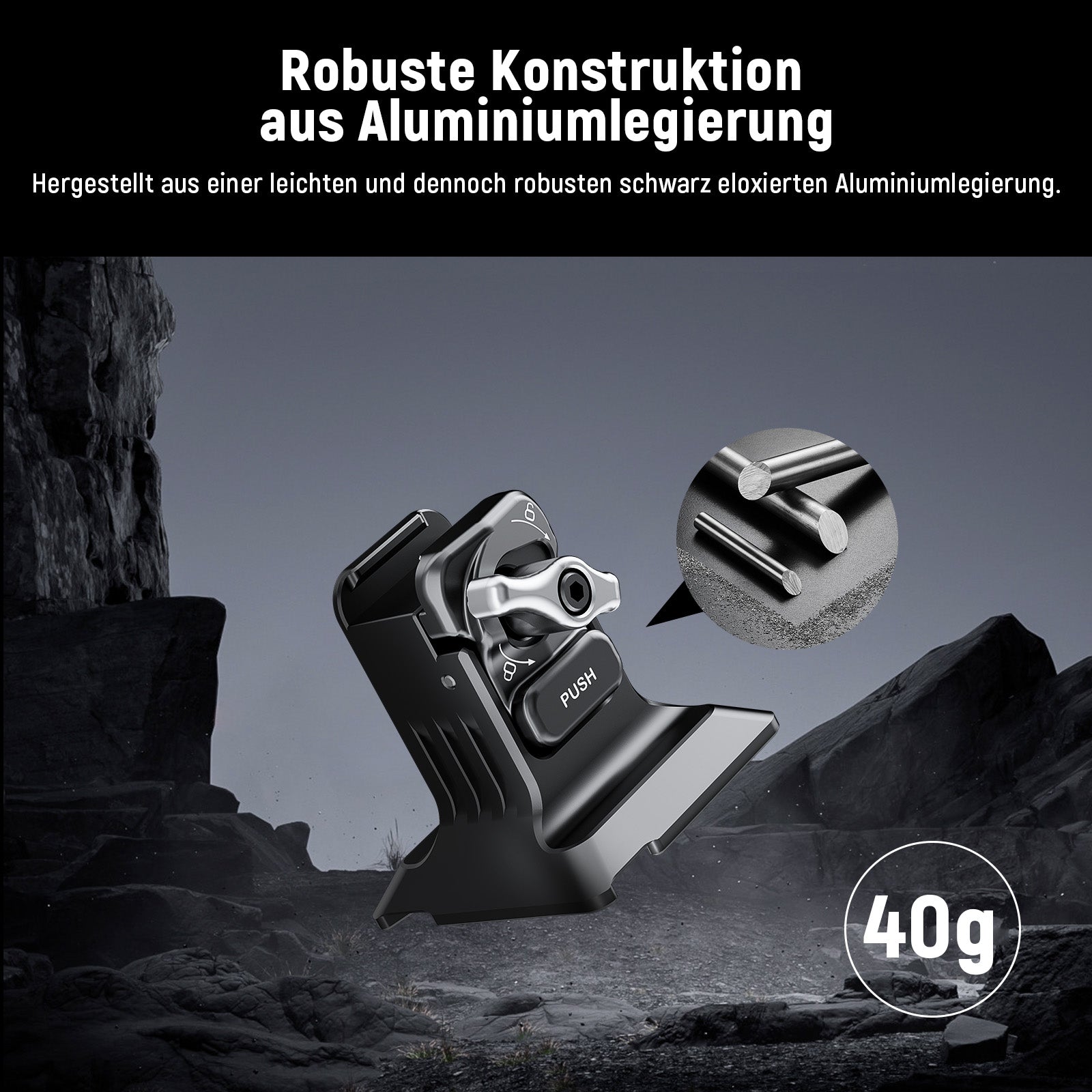 Robuste Konstruktion aus Aluminiumlegierung- Hergestellt aus hochwertiger, schwarz eloxierter Aluminiumlegierung, ist der Handy-Stativ-Adapter leicht und dennoch robust, perfekt für Outdoor-Vlogging, Filmemachen vor Ort und andere Kreationen unterwegs, da der Ersteller von Inhalten unverzichtbar und Influencer haben muss