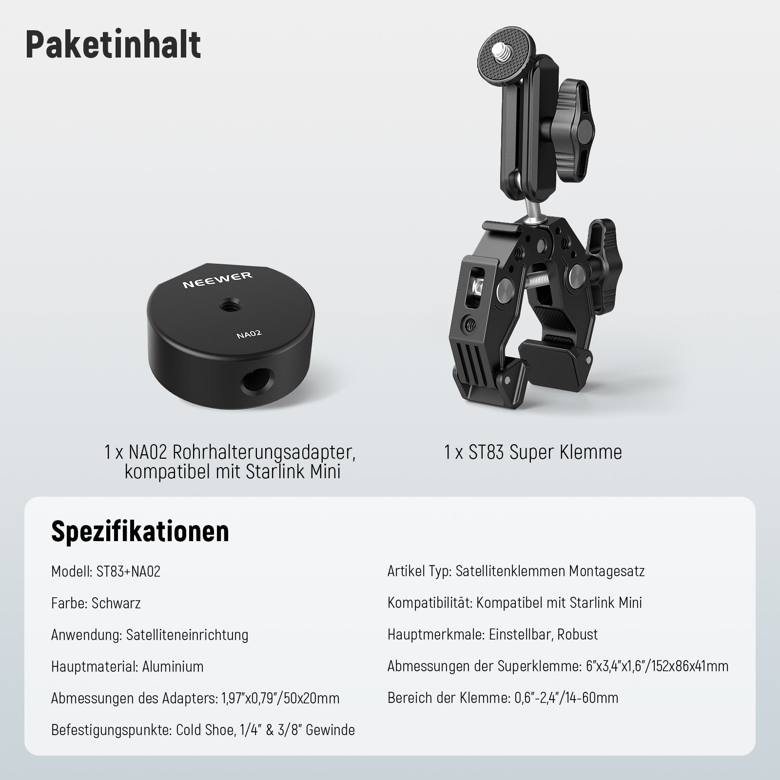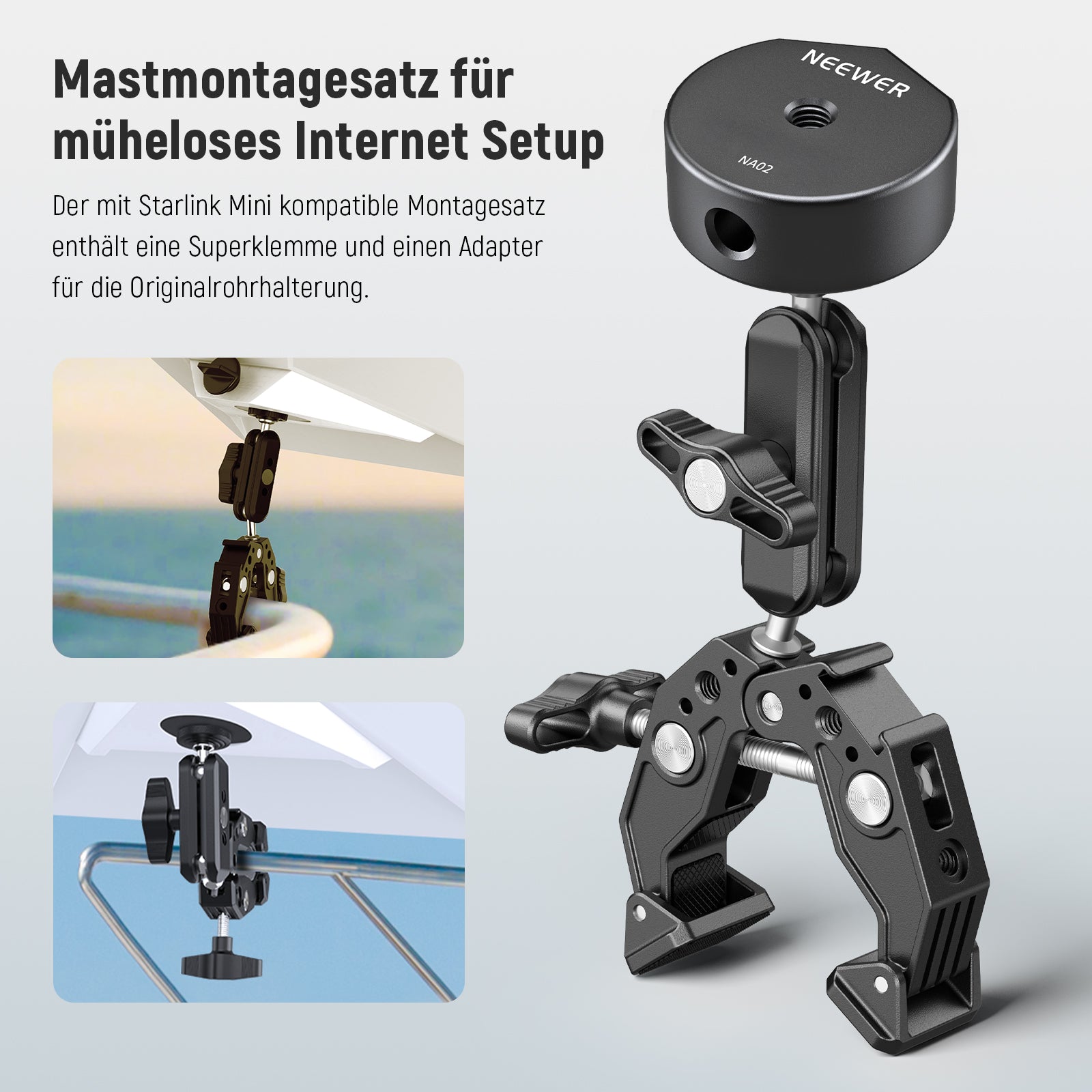 NEEWER ST83+NA02 Super Clamp Halterung Zubehör Set für Starlink Mini