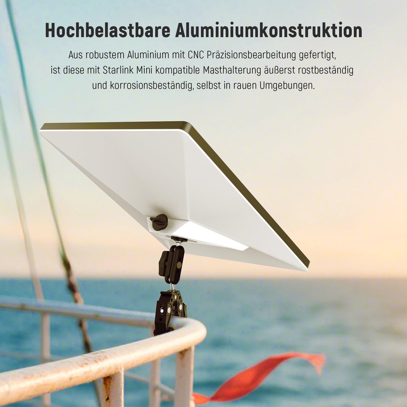 - Robuste Aluminium Bauweise- Aus robustem Aluminium mit CNC Präzisionsbearbeitung gefertigt, ist diese mit dem Starlink Mini kompatible Masthalterung äußerst rostbeständig und korrosionsbeständig, selbst in rauen Umgebungen wie Campingplätzen, Wohnmobilen oder Booten, und somit die ideale Wahl für temporäre Interneteinrichtungen bei Outdoor Abenteuern