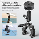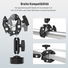 - Tragbar & einfach zu installieren- Leicht und kompakt passt das Aluminium Set in jeden Rucksack und ist ideal für Reisende, Camper. Die Krabbenklemme ist mit einer 1/4" Schraube ausgestattet, während der Montageadapter über 1/4" und 3/8" Gewinde verfügt. Setzen Sie den Adapter sicher in die Rohrhalterung Ihres Satellitenterminals ein, befestigen Sie ihn dann an der Schraube der Befestigungsklemme und befestigen Sie die Klemme an einem Mast. Die gummierten Klemmbacken garantieren festen Halt