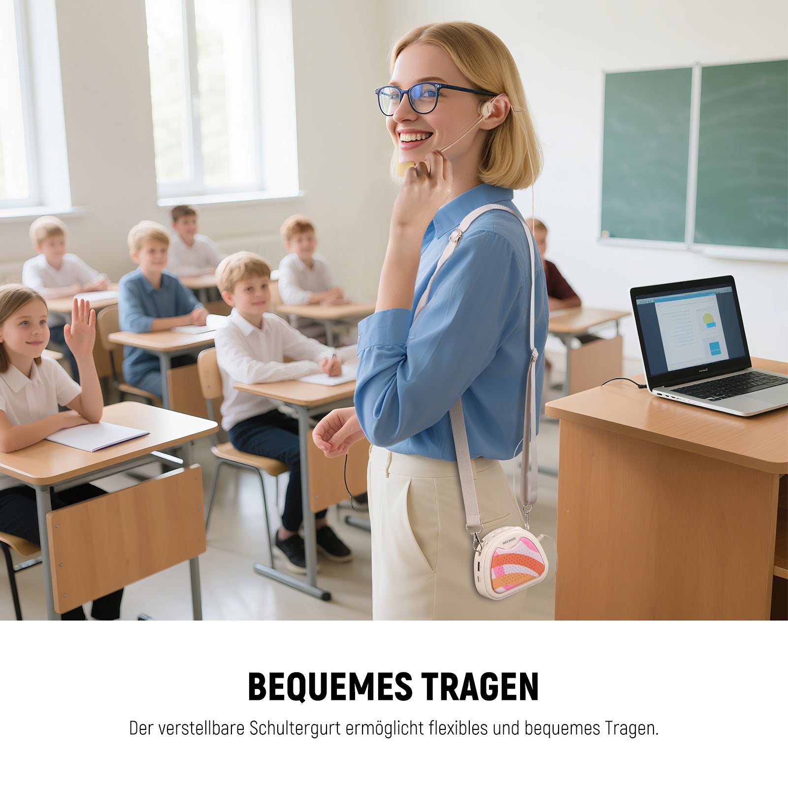 - Multifunktionaler Tonverstärker- Dieser Sprachverstärker mit Headset Mikrofon gewährleistet eine klare und laute Sprachübertragung und ist ein ideales Zubehör für Lehrer, Gesangslehrer, Fitnesstrainer, Reiseleiter und andere Fachleute, die ihre Stimme in lauten Umgebungen deutlich verständlich machen müssen. Der verstellbare und abnehmbare Schultergurt ermöglicht einen bequemen Transport während des Gebrauchs