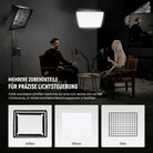 • APP/2,4G/Panel/DMX Steuerung- Das durchdachte Design mit vom LED Lichtpanel getrenntem Controller bietet maximale Bedienfreundlichkeit, ermöglicht einfaches Umschalten zwischen Maximalleistungs und Konstanthelligkeits Modi. Alternativ stehen über die NEEWER App erweiterte Effekte zur Verfügung, oder schalten Sie in den 2,4G Modus für Mehrlicht Steuerung auf demselben Kanal. Zusätzlich unterstützt die Leuchte DMX Konsolen Anbindung für professionelle Lichtsteuerung auf Produktionsniveau