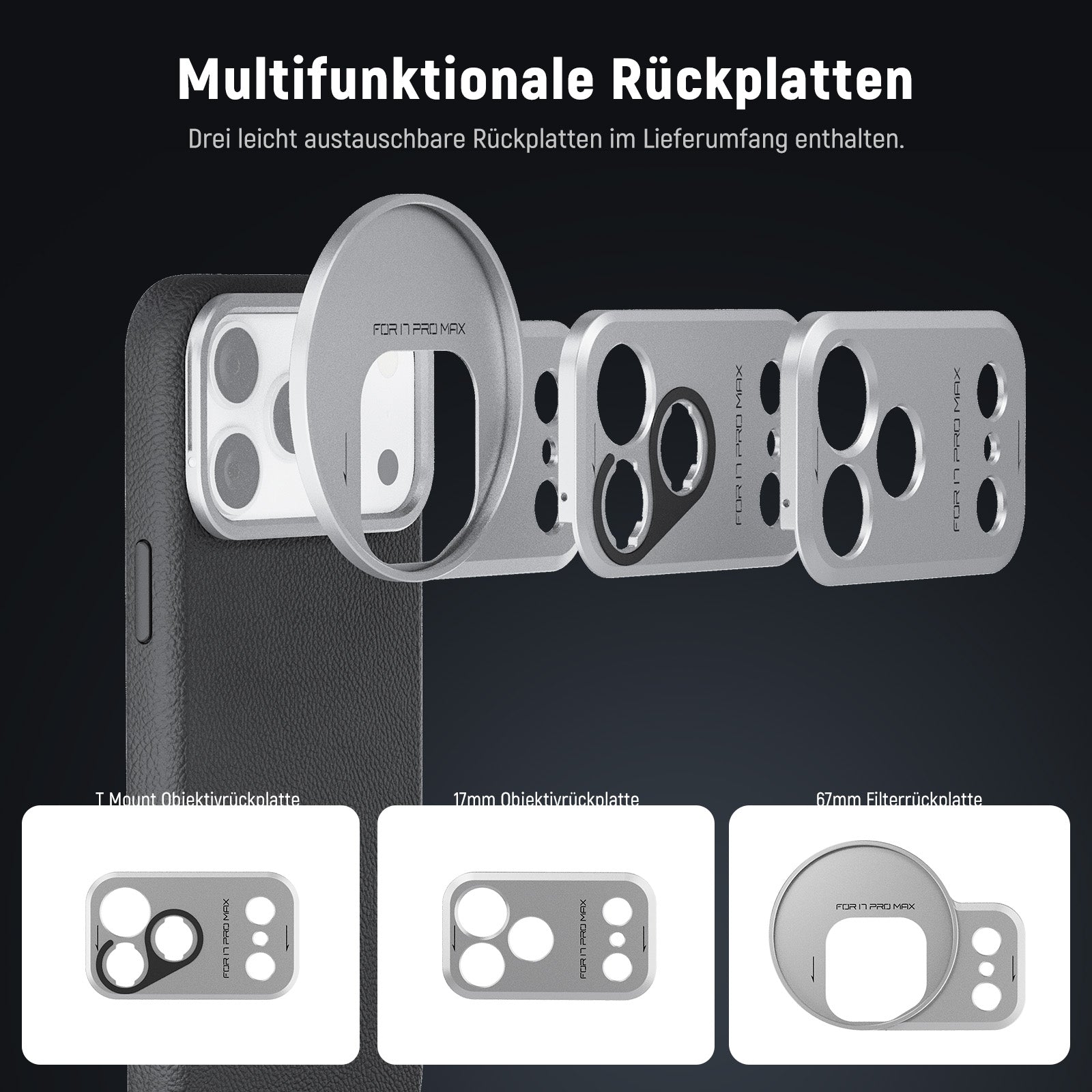 - 1 x 17mm Objektiv-Rückplatte