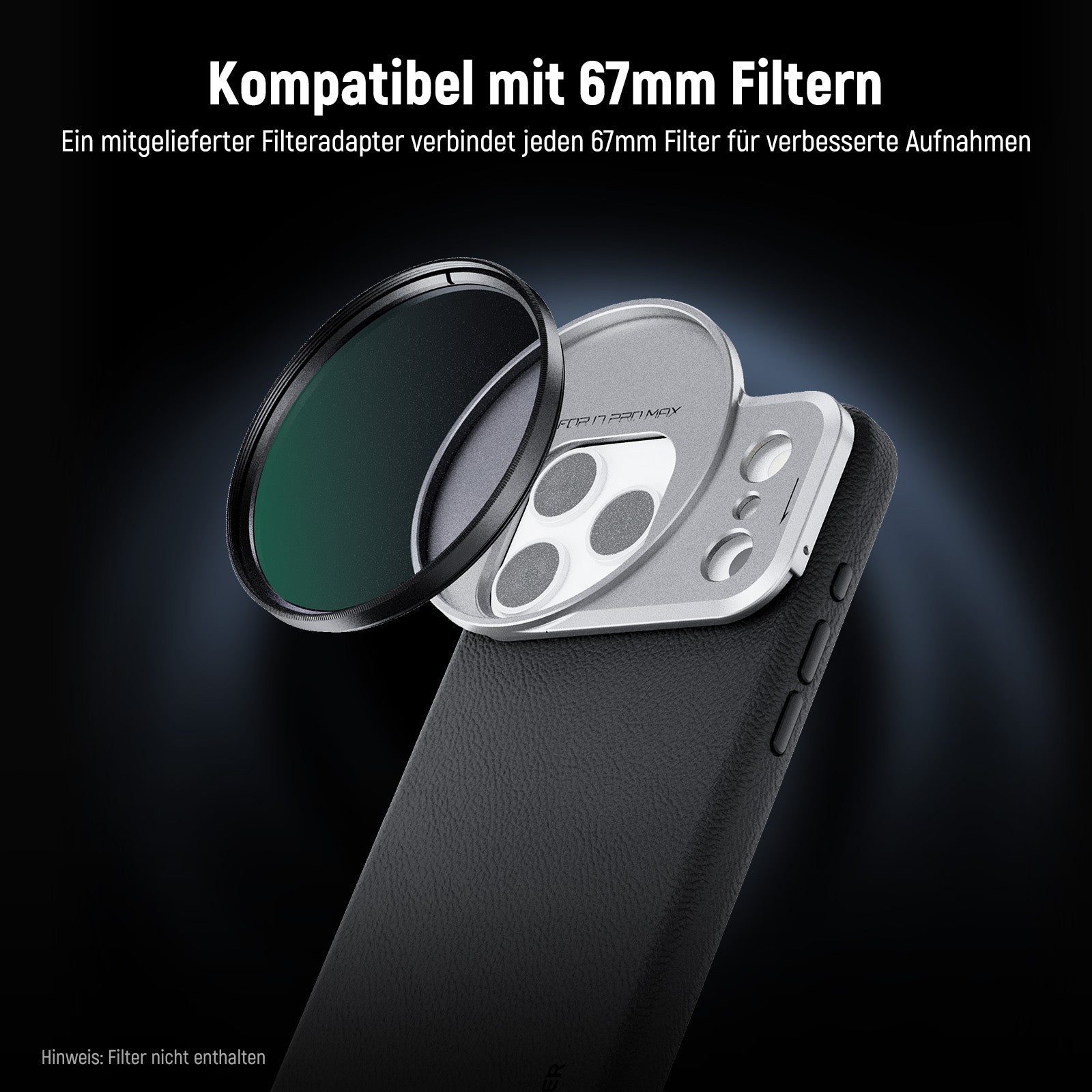 - 67mm Gewindefilter Rückwand- Befestigen Sie beliebige 67mm Kameraobjektivfilter, darunter ND, CPL, Schwarzdiffusions, Lichtverschmutzungs und Verlaufsfilter, für künstlerische und kinoreife Fotografie (Filter separat erhältlich)