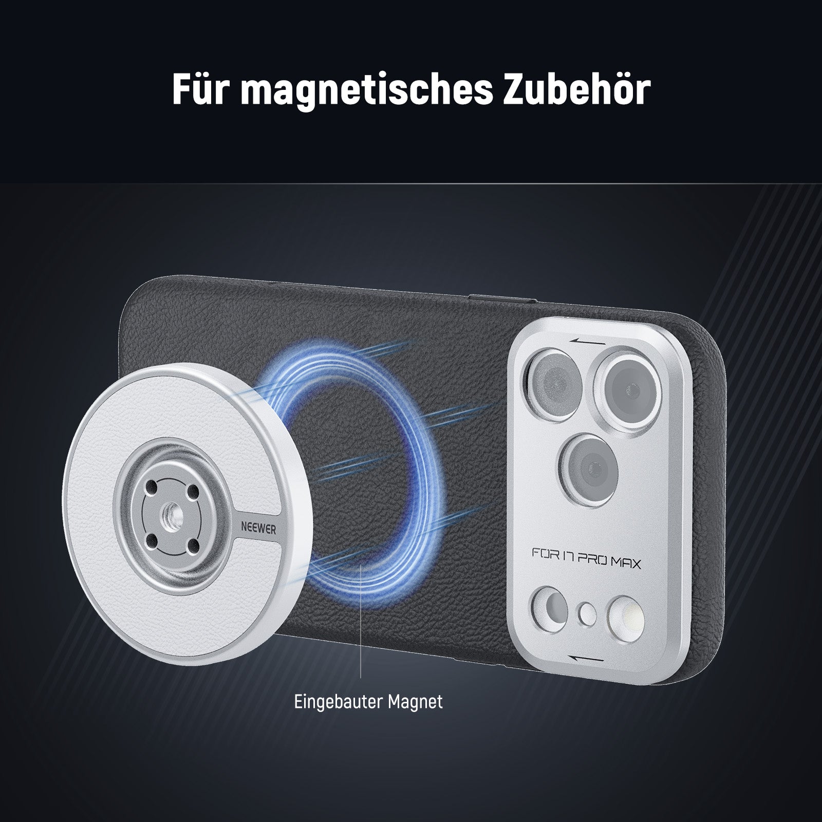 Kompatibel mit MagSafe- Die mit iPhone 17 Pro kompatible Handyhülle ist nahtlos kompatibel mit iPhone Magsafe Wireless Ladegeräten und NEEWER Magnetzubehör, wie z. B. der magnetischen Handyhalterung PA010 für Stative und dem Tisch Handyhalter PA095