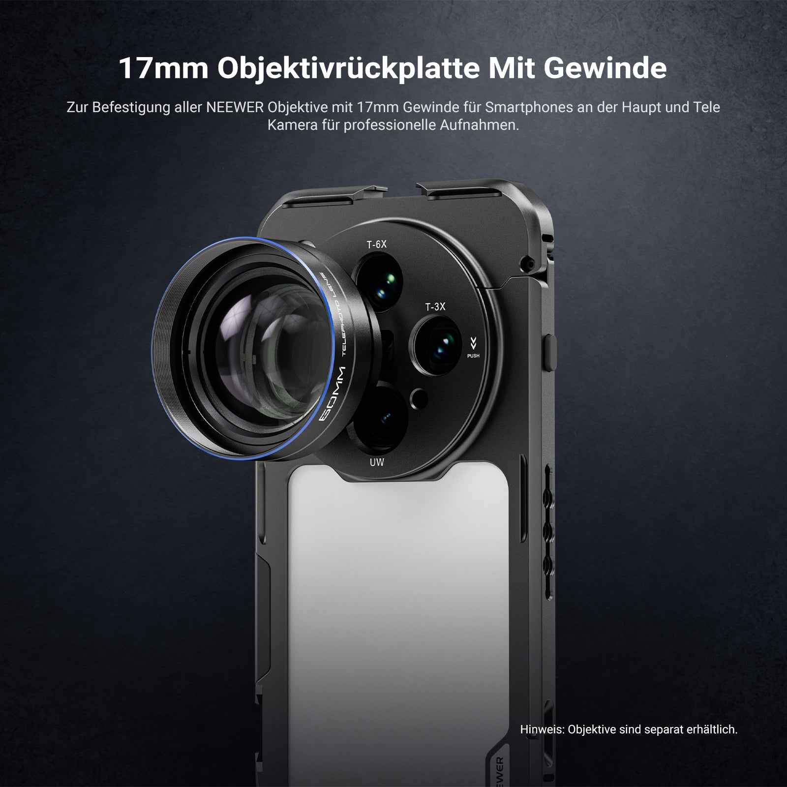 - 17-mm-Gewinde-Objektiv-Rückplatte- Montiert alle NEEWER 17-mm-Gewinde-Objektive an Haupt- und Tele-Kameras für professionelles Filmmaterial (Objektive separat erhältlich)