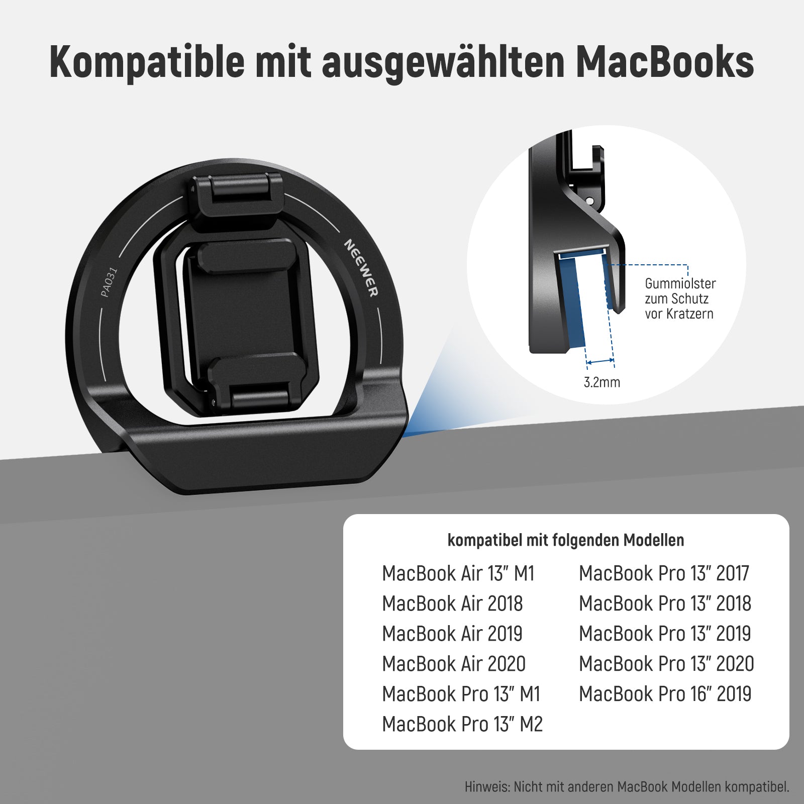 - Kompatibel mit ausgewählten MacBooks- Diese Kontinuitätskamerahalterung ist nur kompatibel mit MacBook Air 13" M1, MacBook Air 2018-2020, MacBook Pro 13" M1/M2, MacBook Pro 13" 2017-2020, MacBook Pro 16" 2019. Gummi Polster zum Schutz vor Kratzern. Hinweis: Nicht kompatibel mit anderen MacBook Modellen