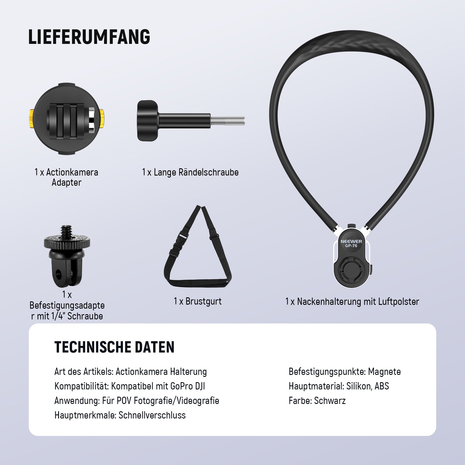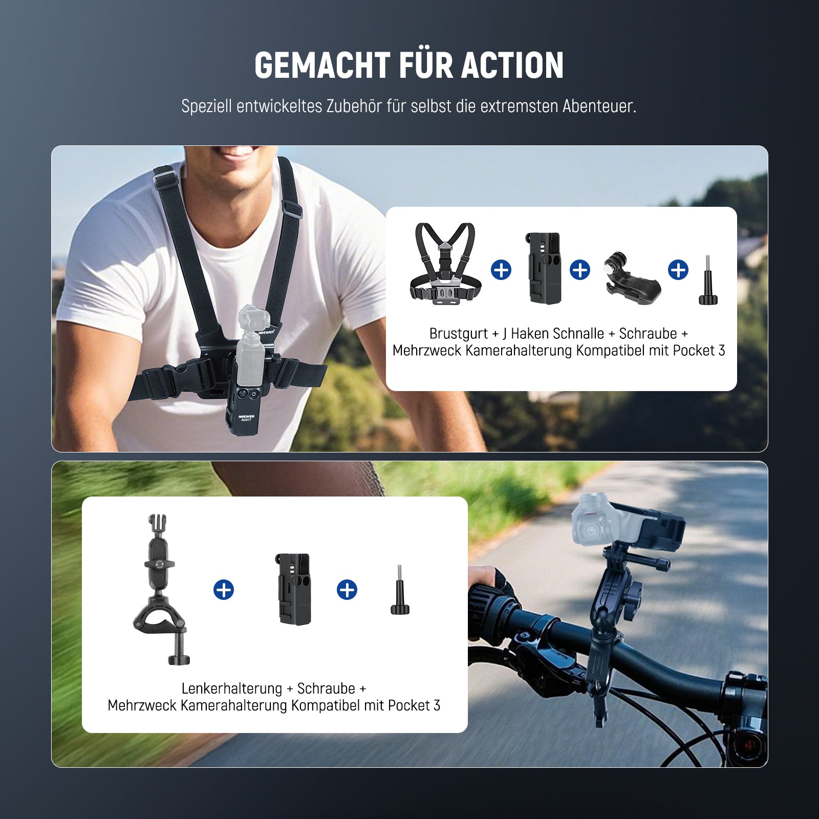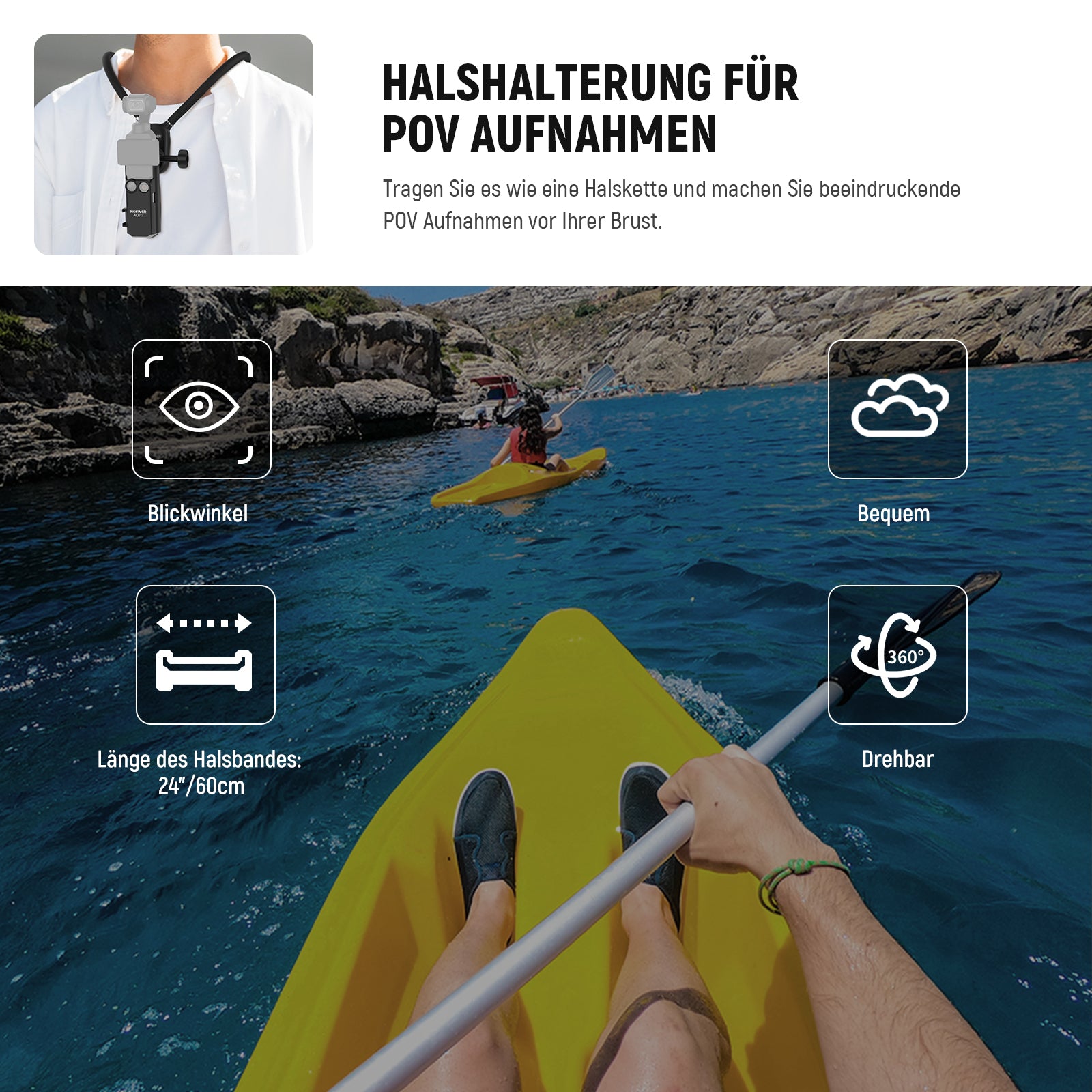 NEEWER POV-Halterungen für Kameras und Smartphones bieten vielseitige Lösungen für eindrucksvolle Aufnahmen aus der Ich-Perspektive. Entwickelt für Actionsport, Outdoor-Abenteuer und kreative Videos ermöglichen sie die sichere Befestigung von Smartphone oder Actionkamera am Körper, Kopf oder Helm.