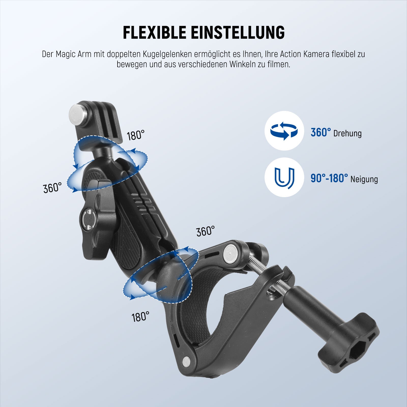 - Sichere Fahrradhalterung mit Schnellverschluss- Die Lenkerhalterung besteht aus robustem Aluminium mit gummiertem Klemmmechanismus für rutschfesten Halt, sodass Ihre Pocket 3 auch auf holprigen Strecken sicher bleibt. Der verstellbare Knopf ermöglicht schnelles Festziehen, Lösen und Winkelanpassungen für Komfort und Stabilität während der Nutzung