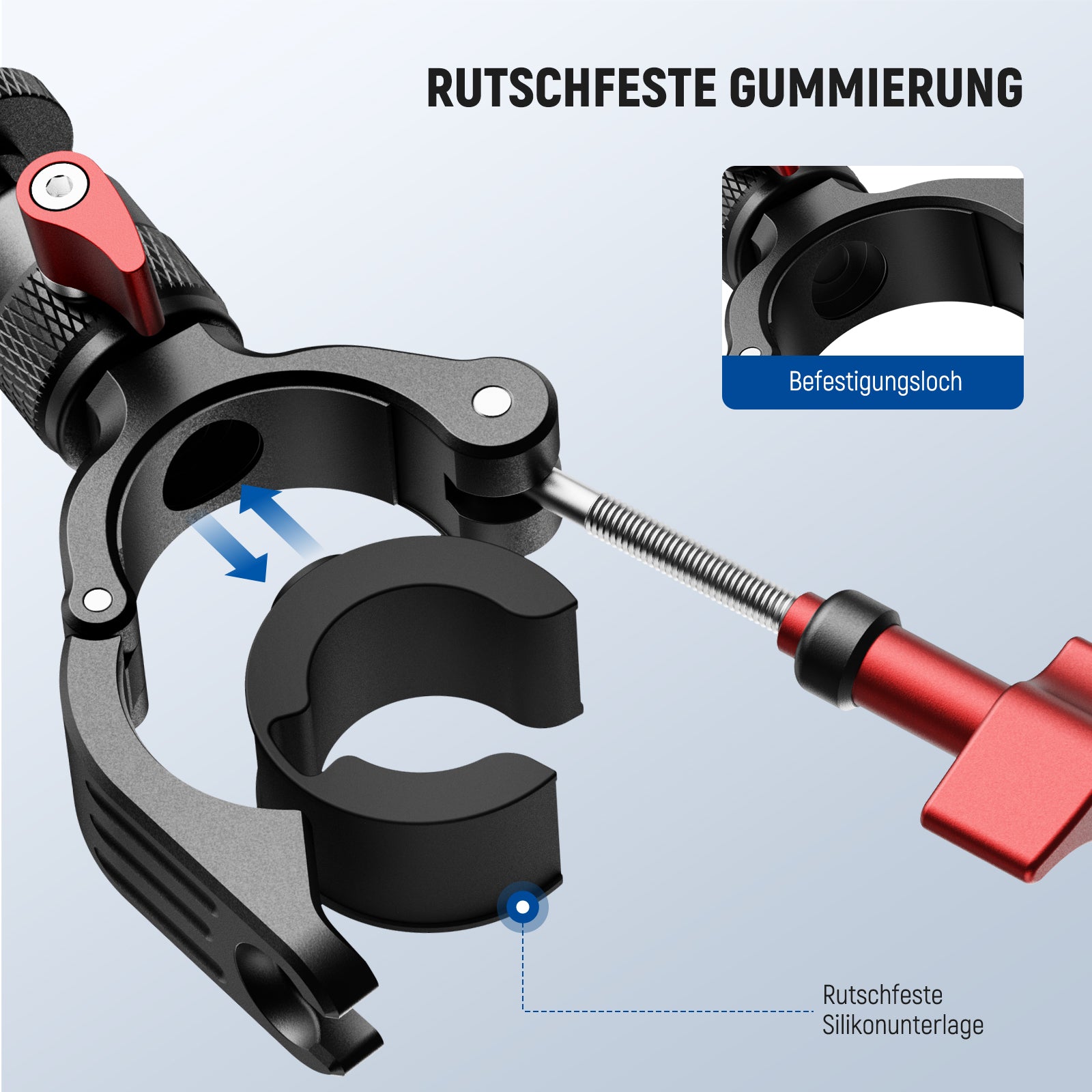 - Verstellbare Passform- Diese Fahrrad Klemmhalterung für Kameras passt auf Lenker mit 7-35mm Durchmesser, sichert sie fest ab und ermöglicht stabile POV Aufnahmen. Ideale Grundausstattung für Content Creator und ein unverzichtbares Muss für Influencer bei Vlogs über das Radfahren, dynamischen Aufnahmen und Action Videoaufnahmen