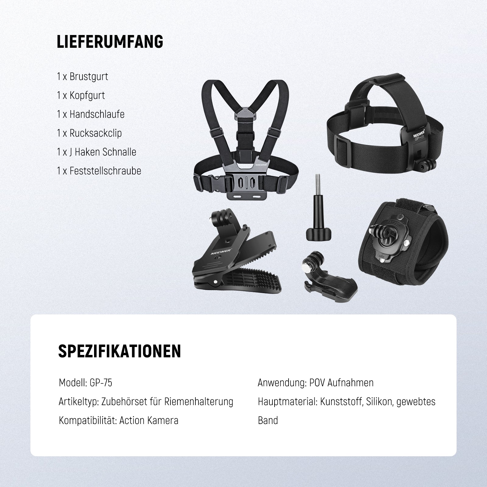 NEEWER GP-75 Zubehör Set Für Action Kamera