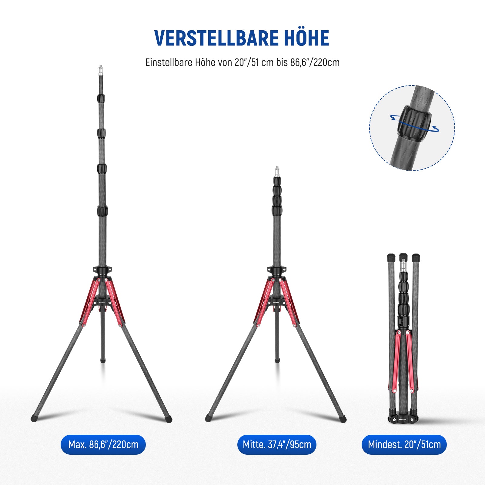 NEEWER ST210R Lampenstativ aus Kohlefaser mit 180° drehbaren Beinen