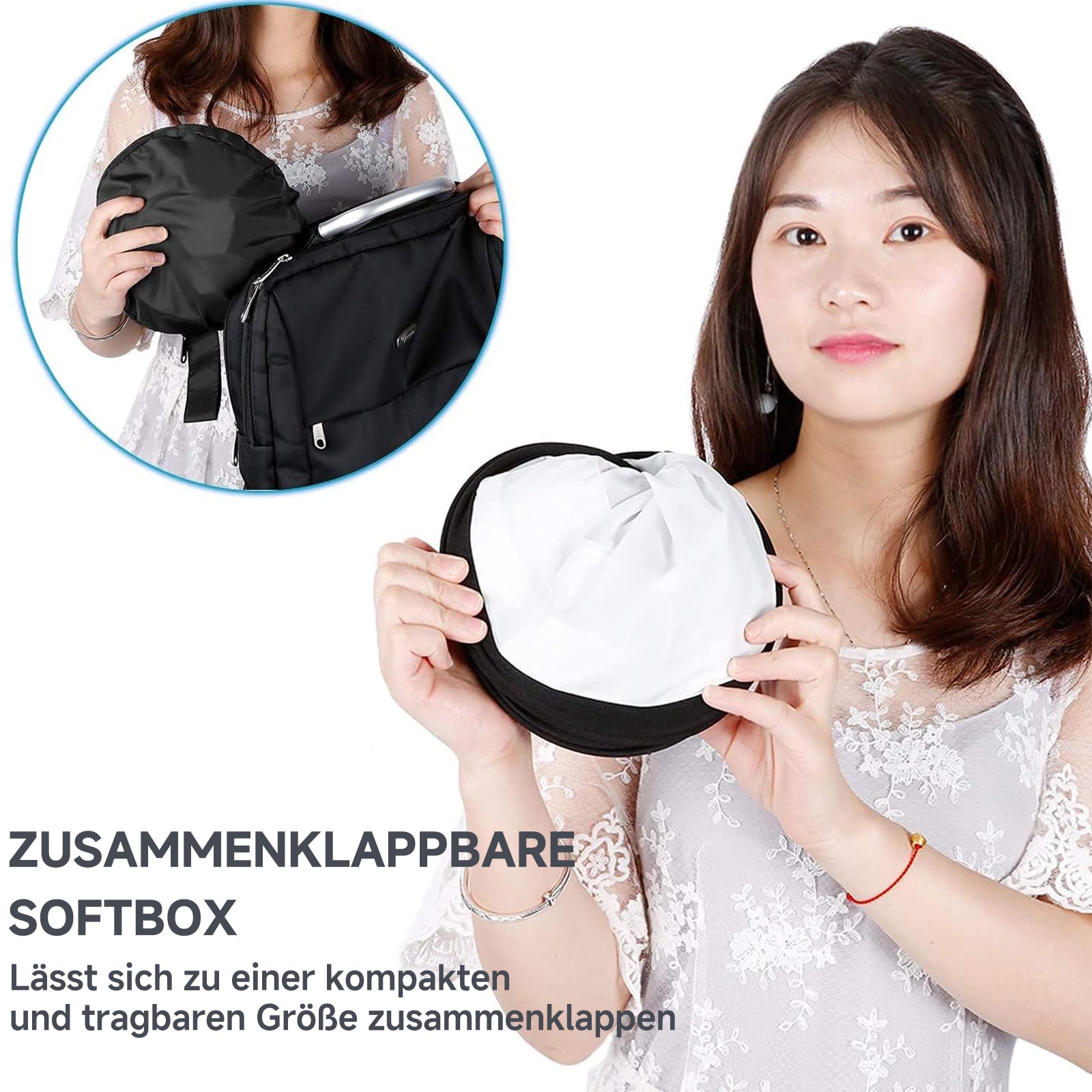 - Tragbare und leichte Softbox: Dank des benutzerfreundlichen Designs kann die Softbox auf eine kompakte Größe zusammengefaltet werden, um sie im Rucksack für eine Veranstaltung im Freien mitzunehmen; auch mit der befestigten Beleuchtungsanlage wiegt sie nicht viel mehr; mit dieser Softbox können Sie Ihre kreativen Arbeiten auf einfachste Weise durchführen.