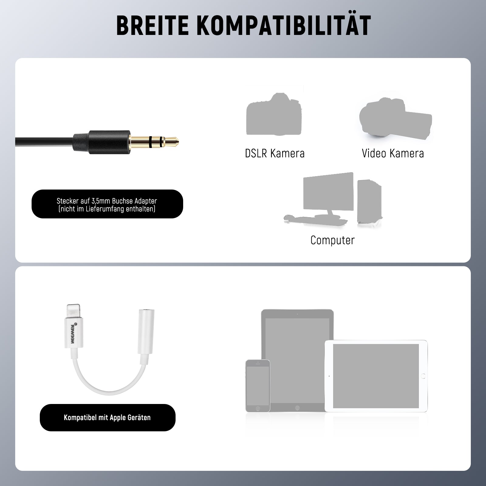 【Universelle Kompatibilität】 NEEWER CM5 verfügt über einen vergoldeten 3,5mm TRS Stecker und eignet sich für Android Smartphones, Kameras, Camcorder, Audiorekorder, Handy, Tablets und Laptops, mit einer 3,5mm TRS Buchse ausgestattet sind. Diese Lavalier Mikrofon sind auch mit Rode Wireless GO II 2, DJI Drahtlos Mikrofonsendern und NEEWER CM22/CM28 Drahtlos Mini Smartphone Microphone System kompatibel. Hinweis: Nicht kompatibel mit GoPro Action Kameras. Nicht kompatibel mit Sony Mikrofonsystemen