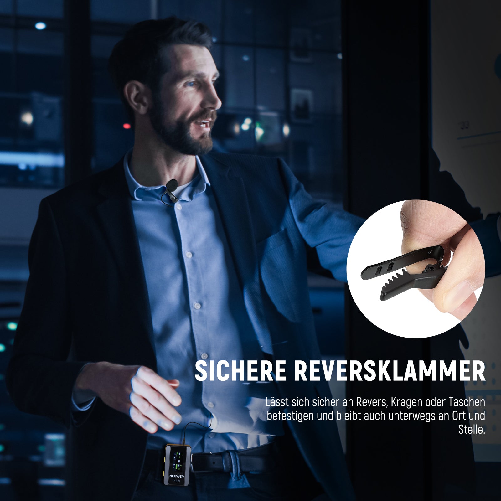 - 【Bequem für mehrere Zwecke】 Dieses 2er Pack Mikrofonset ist benutzerfreundlich für Bühnenauftritte, Präsentationen, Sendungen, TV Moderation, Vorlesungen, Fitnesskurse, Vlogging und viele andere Anwendungen, ohne dass Sie Batterien benötigen oder ein Mikrofon von einem Lautsprecher zum anderen bewegen müssen. Die kompakte Größe des Lavaliermikrofon sorgt für minimale Sichtbarkeit, um den professionellen Anforderungen in verschiedenen Bereichen gerecht zu werden