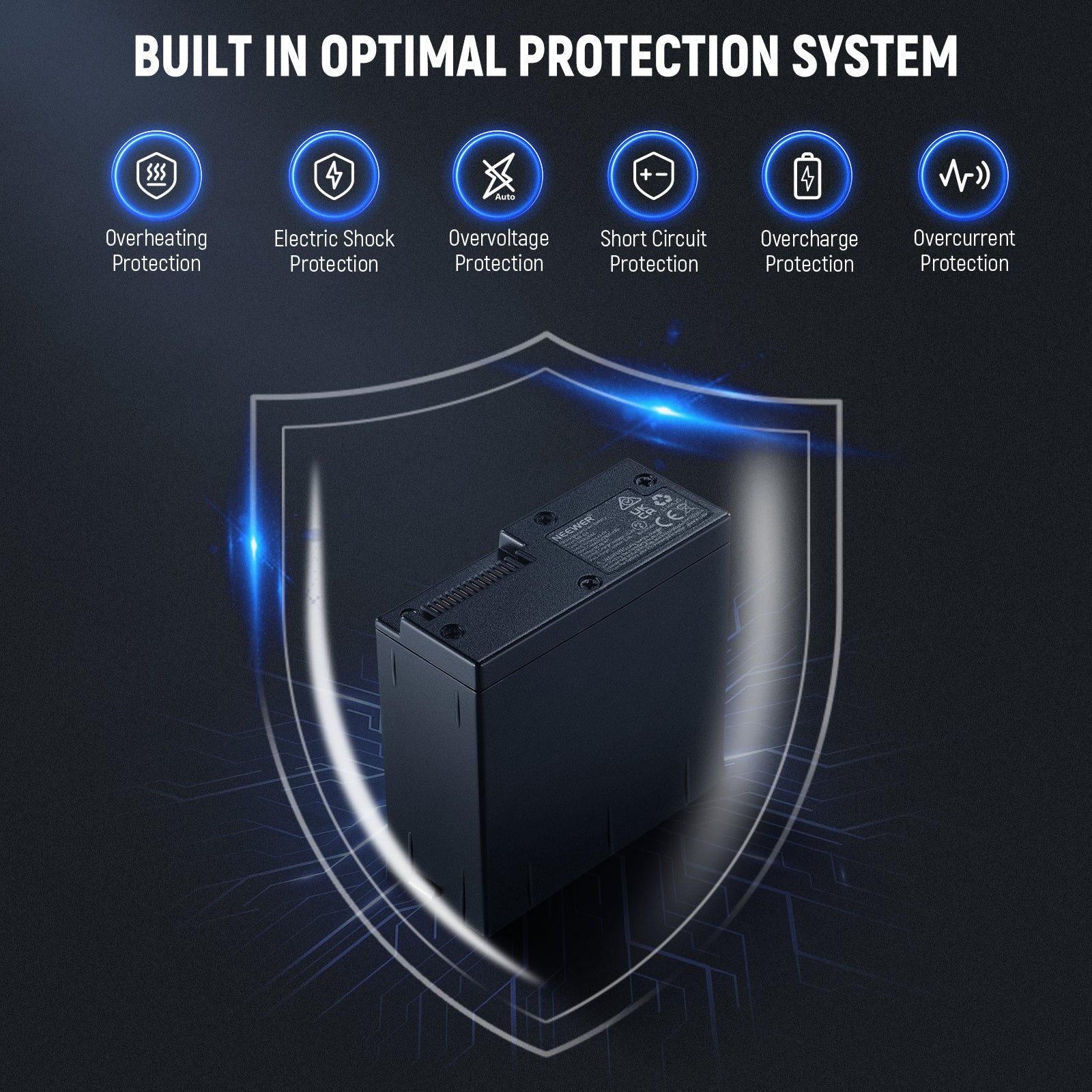 - 【Sicherheit und Zuverlässigkeit】 Der Lithium Ionen Akku verwendet hochwertige Materialien und fortschrittliche Technologie und verfügt über einen integrierten Überladungsschutz, Überentladungsschutz, Überspannungsschutz, Überstromschutz und Überhitzungsschutz