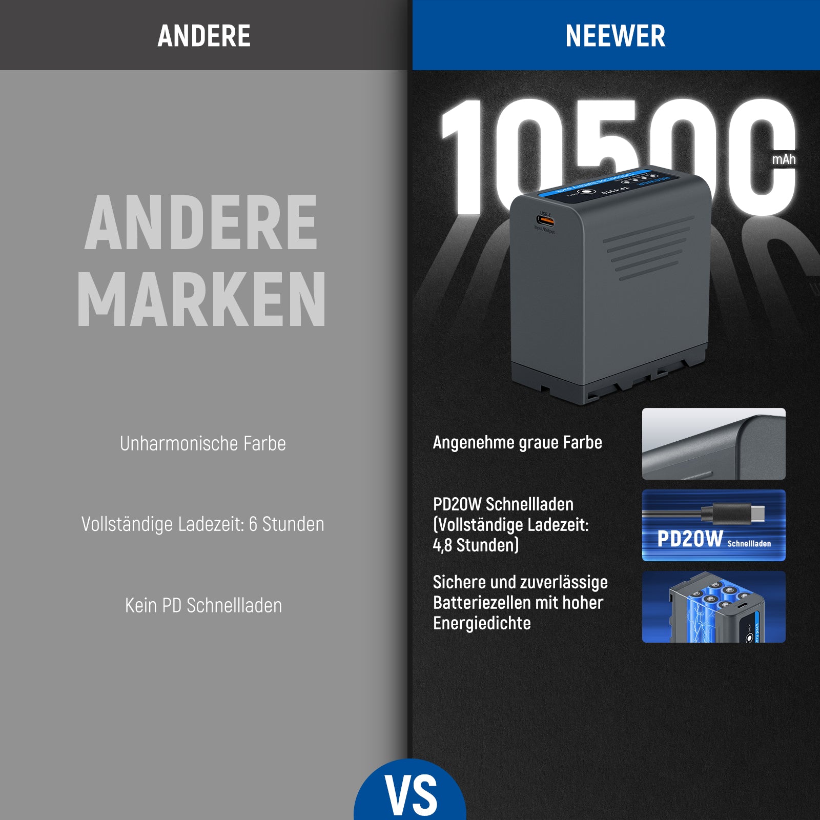 NEEWER TP-F970 10500mAh Ersatz für Akku NP-F970 mit PD 20W Schnellladung