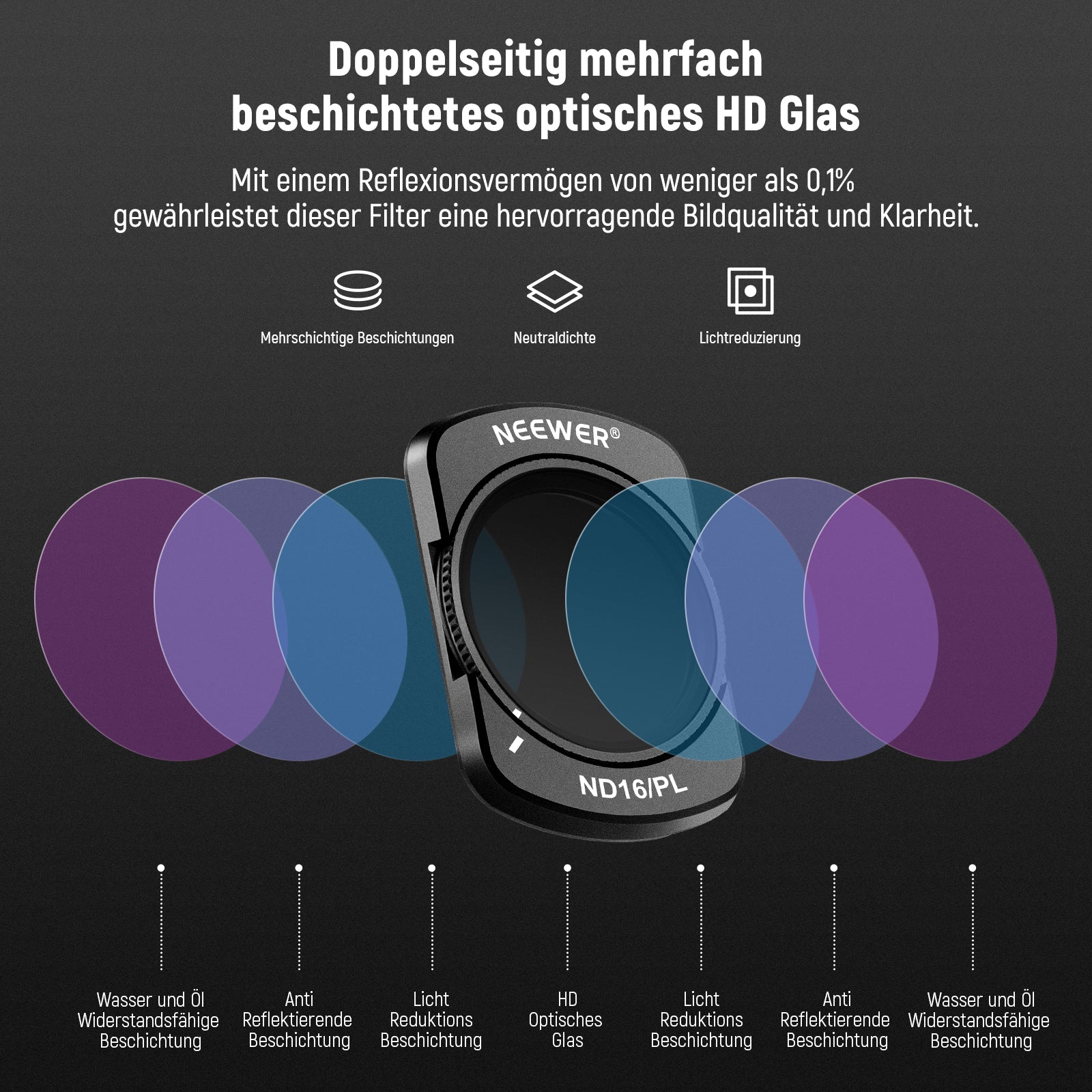 - 【Belichtung steuern und Reflexionen reduzieren】 Die ND/PL Filter bieten eine praktische Lösung, indem sie die Filterfunktionen Neutraldichte (ND) und Polarisation (PL) in einer einzigen Einheit kombinieren. ND16/PL ND32/PL ND64/PL ND256/PL reduzieren das Licht um 4, 5, 6 bzw. 8 Blendenstufen und ermöglichen so eine präzise Belichtungssteuerung bei unterschiedlichen Lichtverhältnissen.