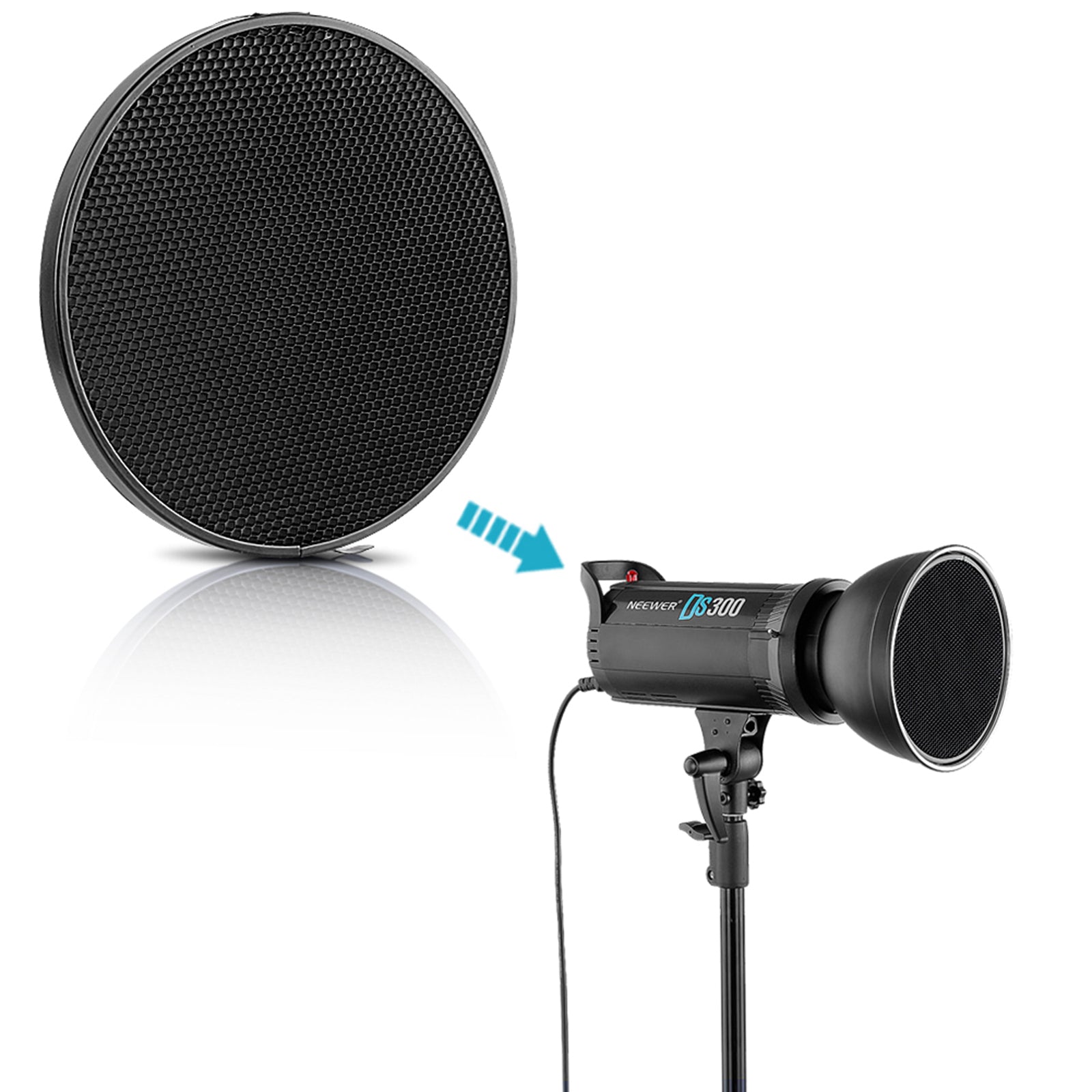 - 18 cm Standard-Reflektor mit 10/30/50 Grad Wabenraster für Bowens-Mount-Studio-Lichtstrobe.