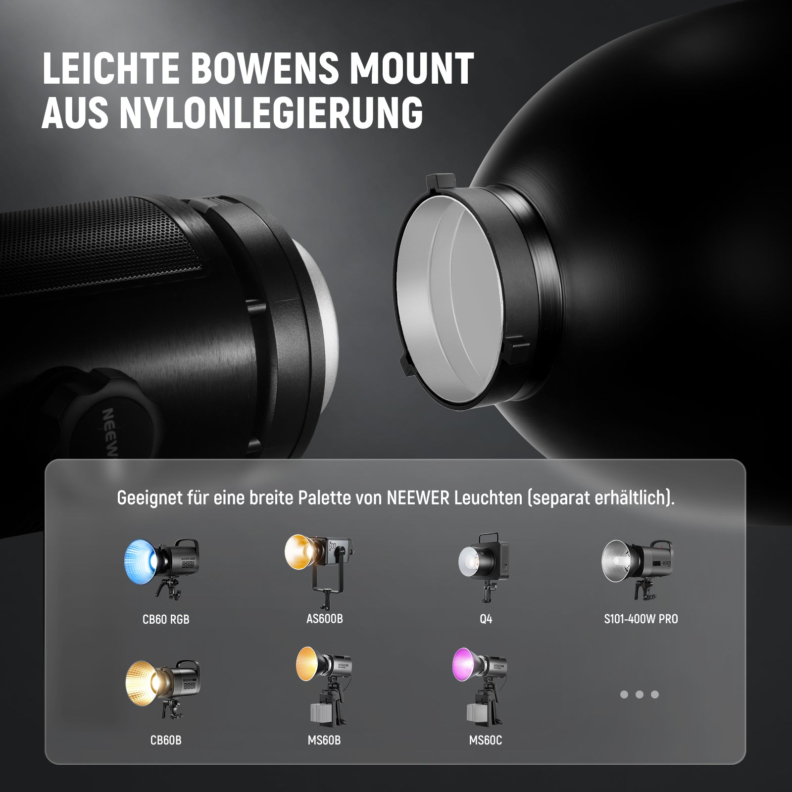 - Kompatibilität: Bowens Mount Studio Blitzlicht