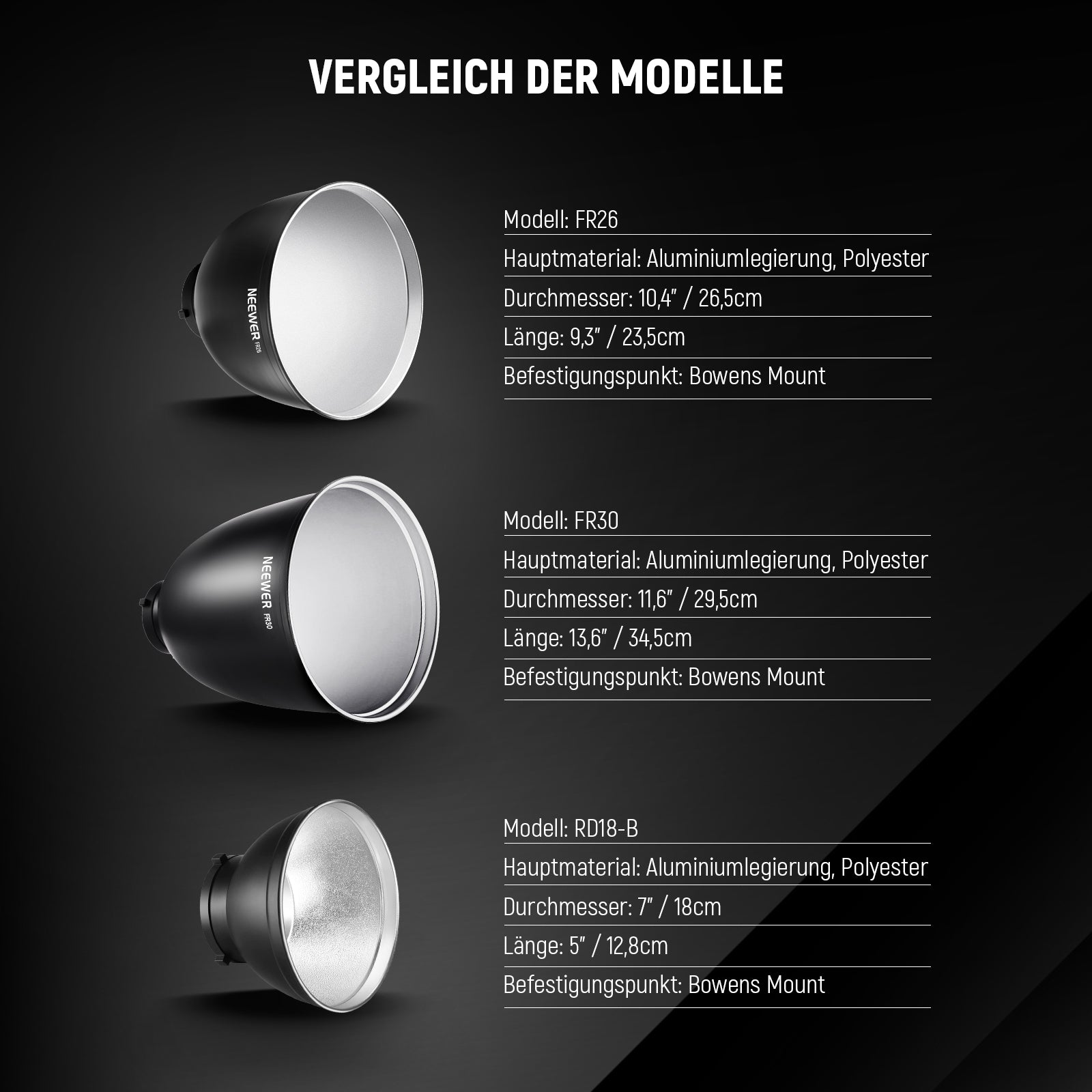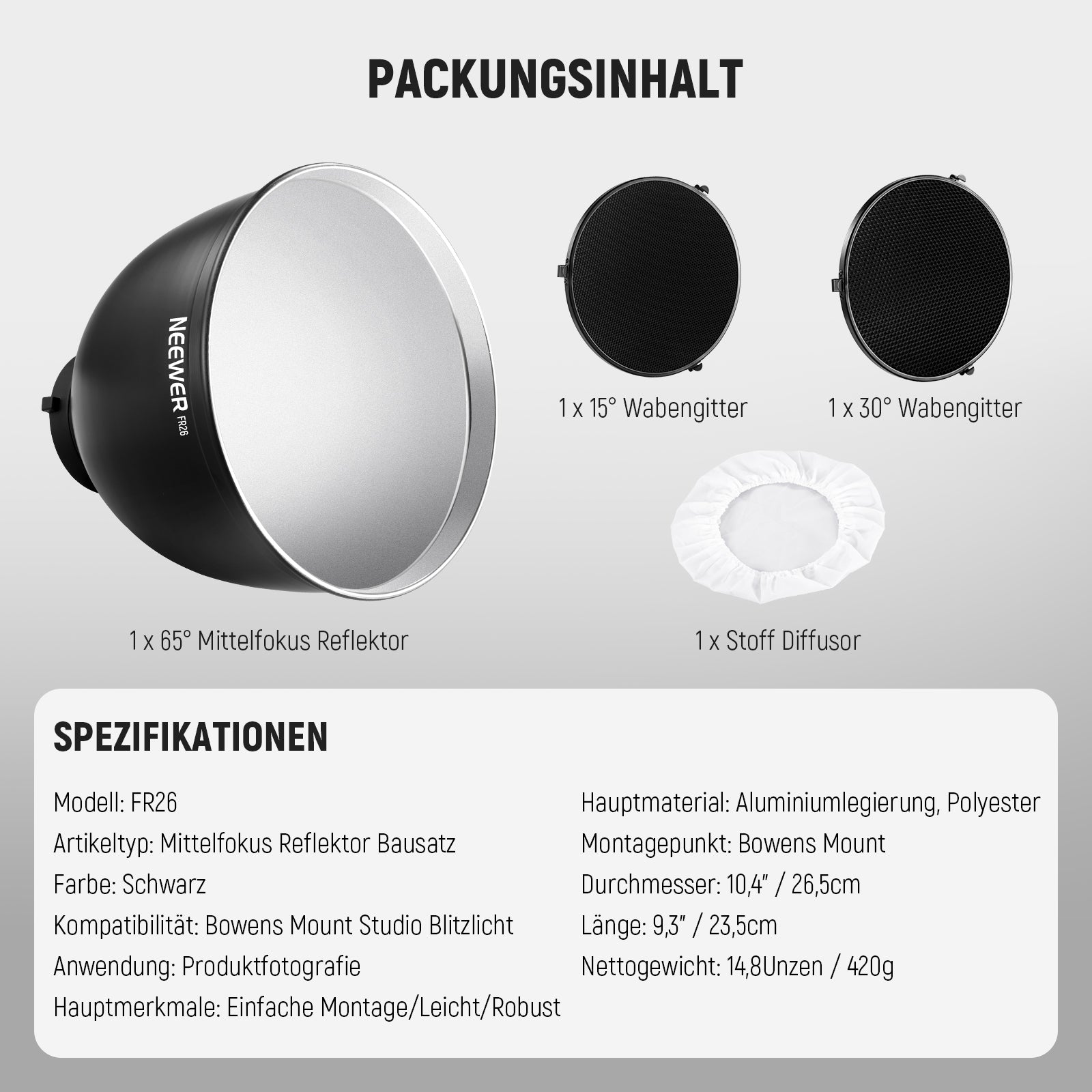 NEEWER FR26 10,4″/26,5cm Reflektor mit mittlerem Fokus Bowens Mount Set