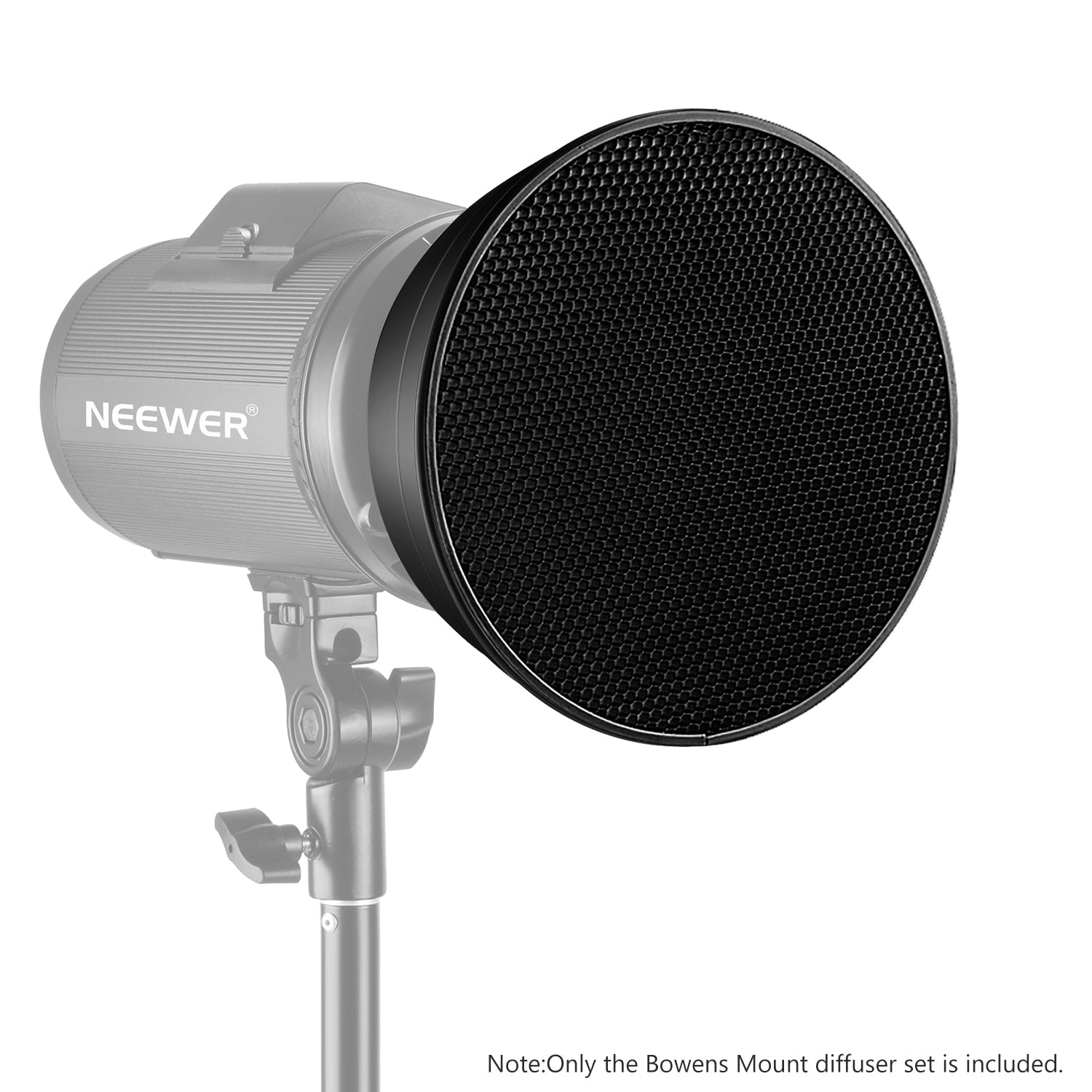 - Wabenraster: Kommt mit 20°/40°/60° Wabengittern; Die Wabengitter können einfach vom Lampenschirm installiert und deinstalliert werden. Es kann die Lichtleistung Ihres Lampenschirms auf verschiedenen Ebenen verkleinern und verschiedene Schatteneffekte für Sie bereitstellen; es verändert die Form und Intensität der Lichtleistung Ihrer Blitzköpfe. Die Verwendung eines Rasters führt zu einem kleinen Lichtkreis, wenn es an der Vorderseite Ihrer Lichtquelle befestigt ist