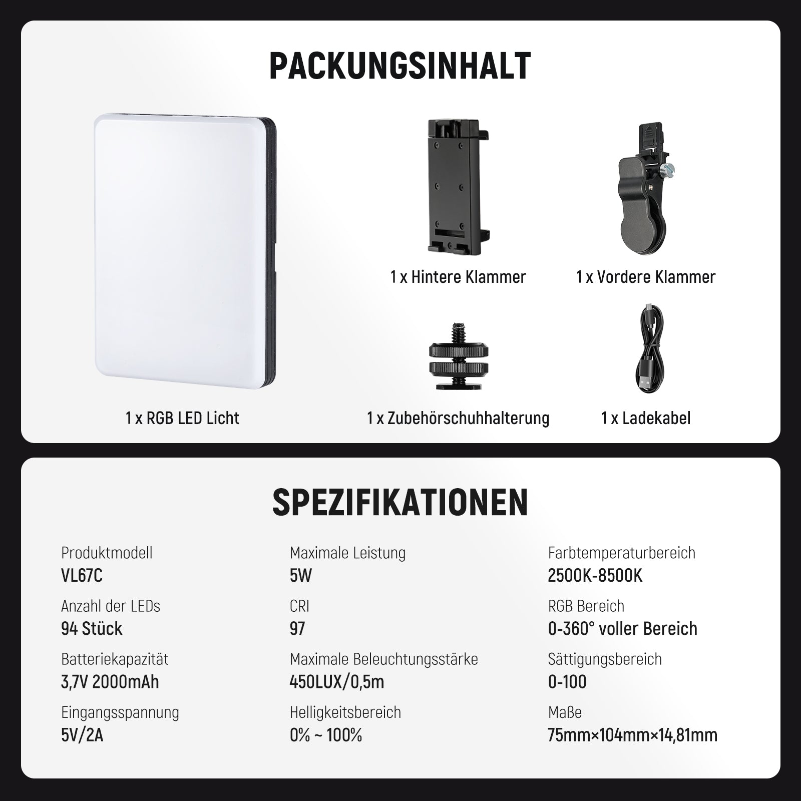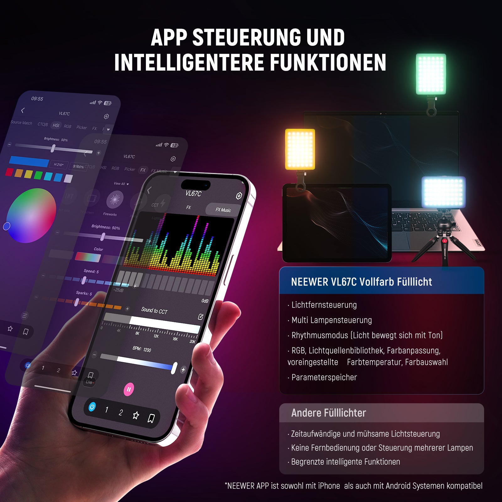 NEEWER VL67C RGB Videoleuchte Selfie Licht mit APP Steuerung