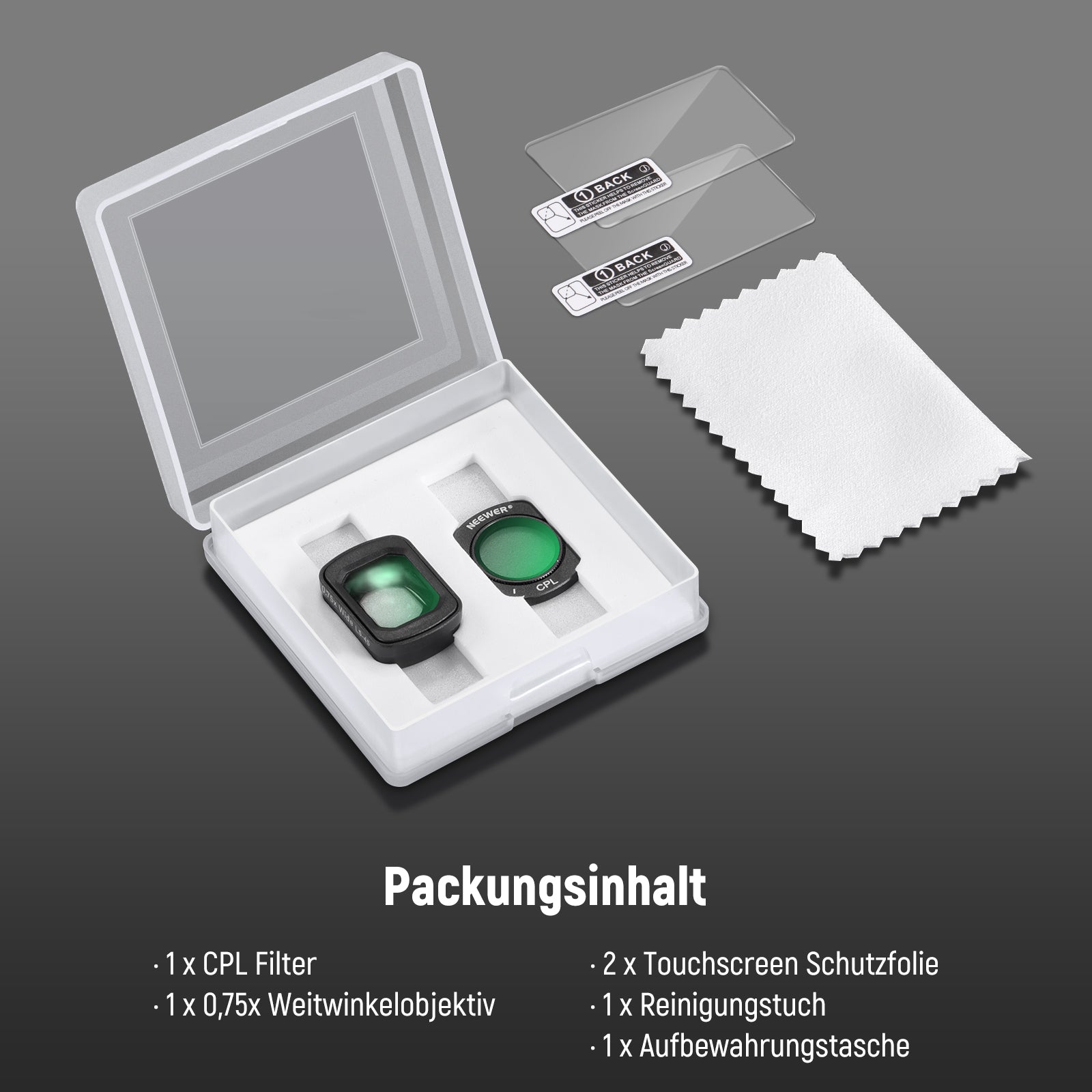 NEEWER FL-B29 2er Pack Filter Set mit CPL Filter/0.75X Weitwinkelobjektiv für DJI Osmo Pocket 3