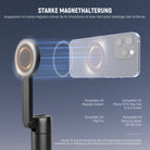 - Starker Magnetverschluss- Mit leistungsstarken Magneten sorgt der Handyhalter dieses hohen Reisestativs für einen festen Halt und ermöglicht es Ihnen, Ihr Smartphone mit einer Hand sofort am Stativ anzubringen oder davon zu lösen. Kompatibel mit MagSafe iPhone 17 16 Max Plus MagSafe iPhone 15 14 13 12 Mini iPad Pro Samsung Galaxy S25 S24 Ultra usw. Für Android Handys oder nichtmagnetische Hüllen verwenden Sie den mitgelieferten Magnetring zur sicheren Befestigung